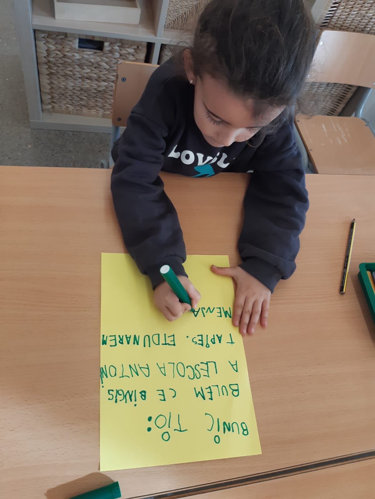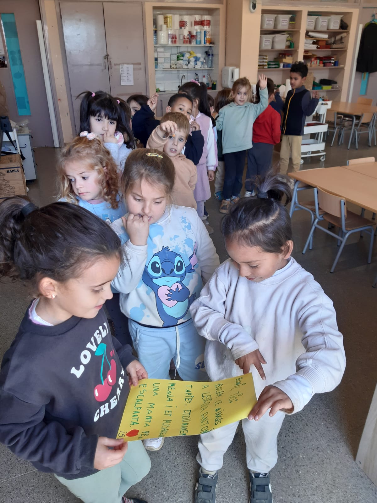 Totes dues classes ens hem posat d’acord: cal que el Tió sàpiga que l’estem esperant amb molta il·lusió. Per això li hem escrit unes notes i les hem col·locat en llocs ben visibles de l’escola perquè les pugui veure de seguida.