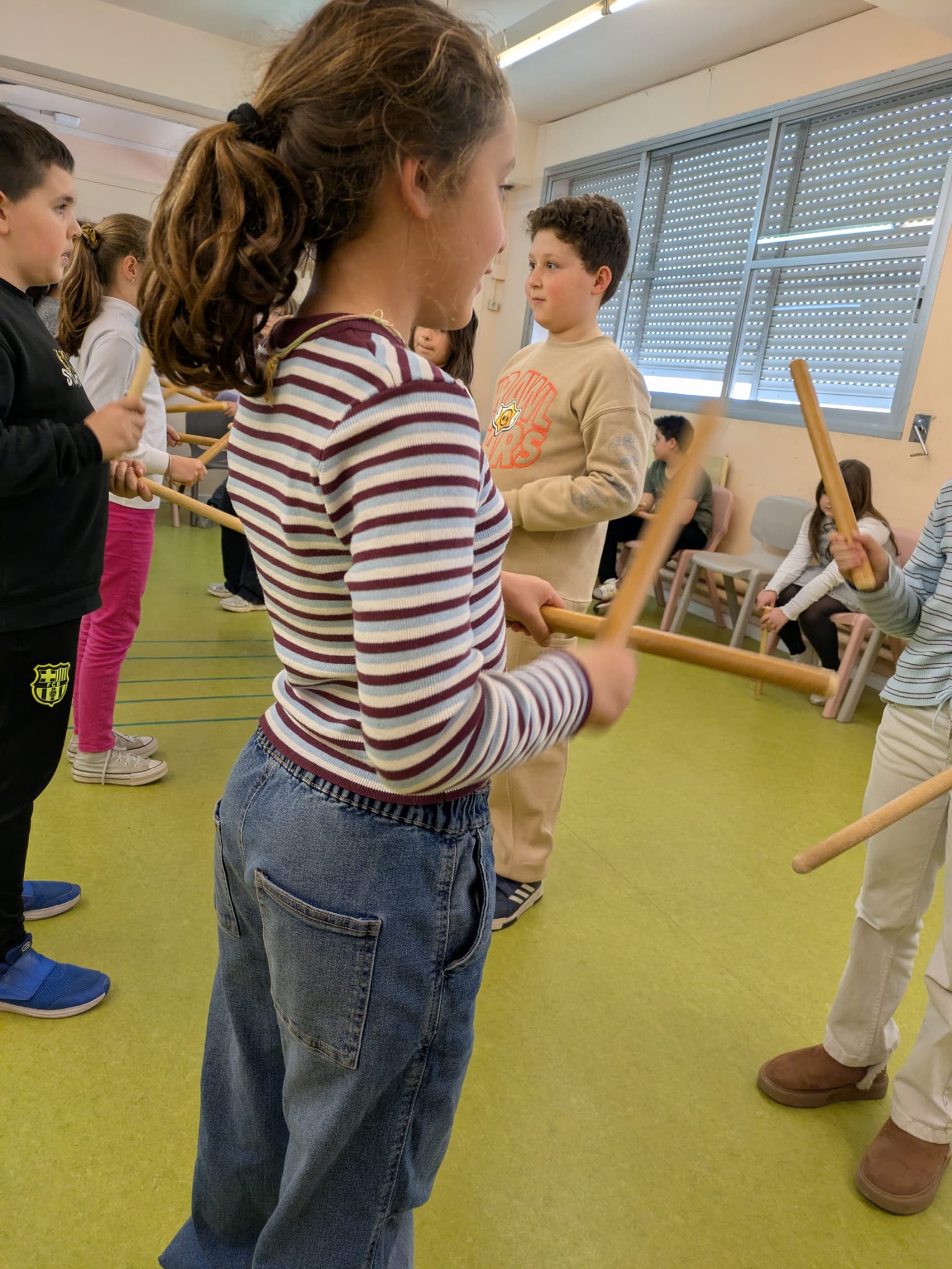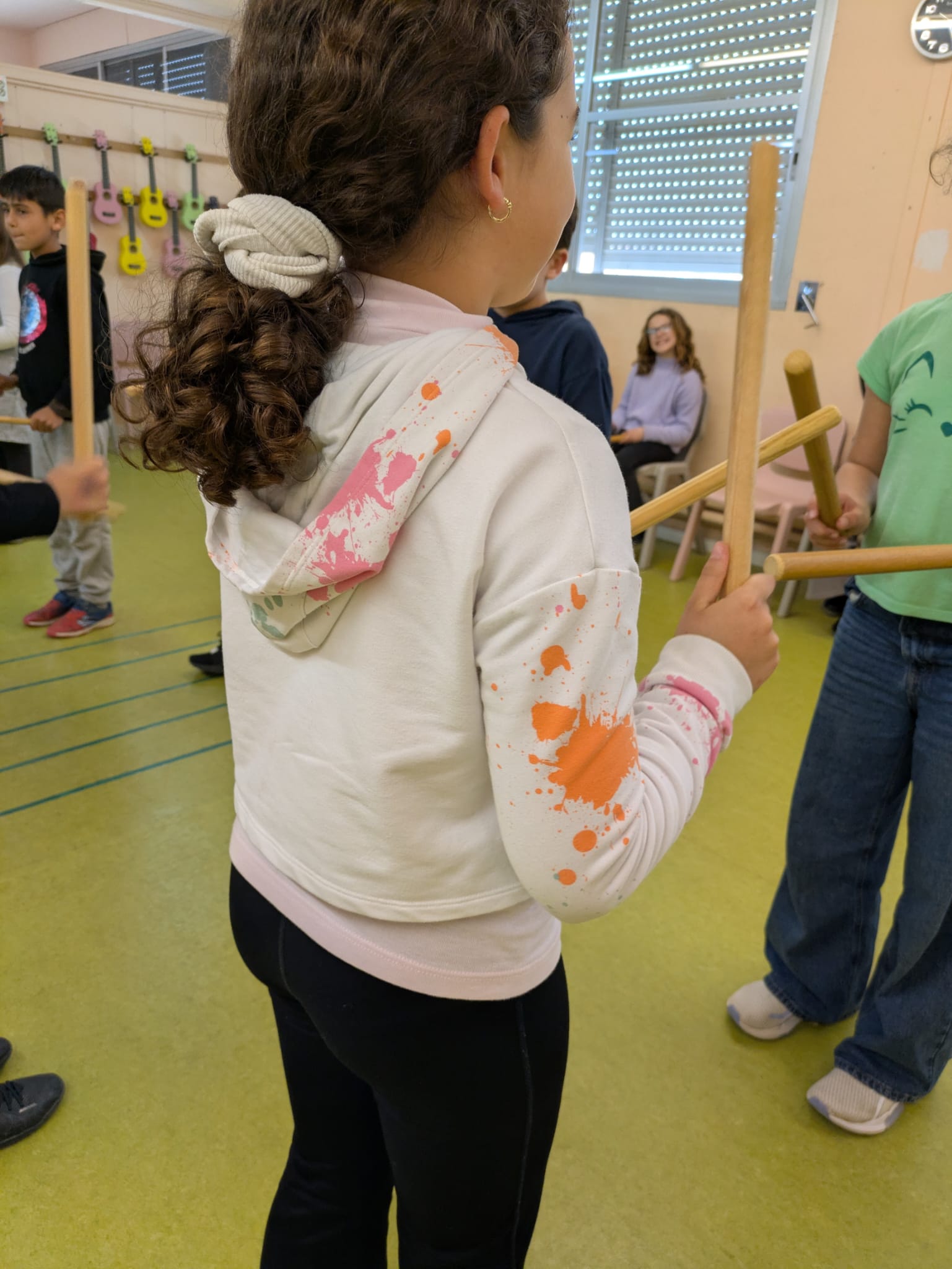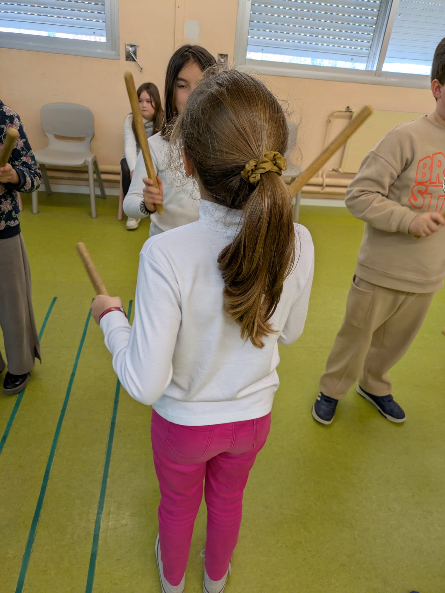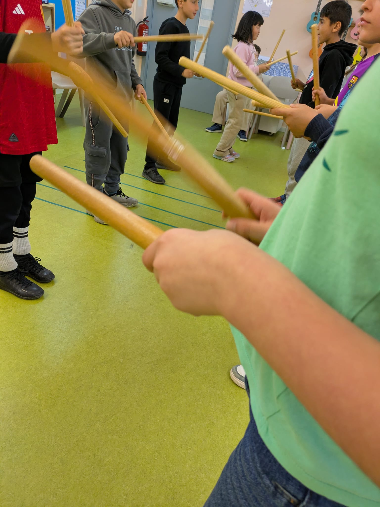 Els nens i nenes de 4t de Primària han treballat aquesta setmana el moviment corporal, la coordinació i la sincronització a través d’una activitat amb bastons.