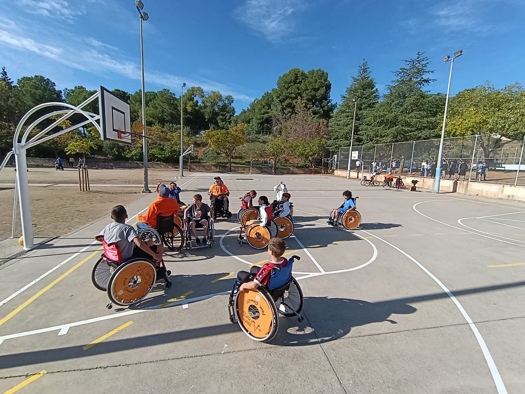 A cinquè, aquesta ha estat una setmana molt emocionant: primer una xerrada sobre el Bullying amb el Xavi, el nostre policia municipal de referència. I després ens hem posat a les sabates de les persones amb discapacitat, fent un partit de bàsquet en cadira de rodes, bicis impulsades amb els braços, circuits per a persones cegues…