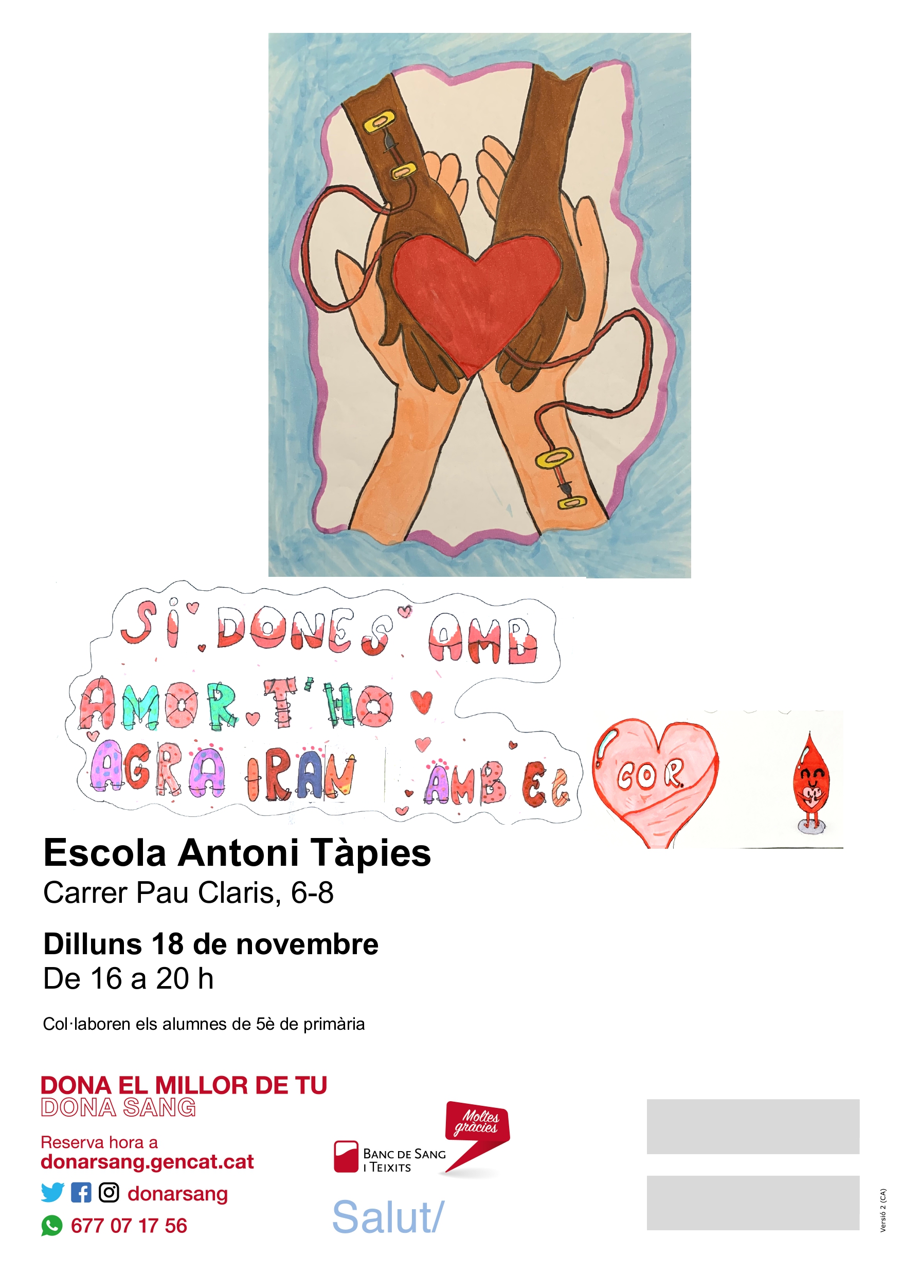L’alumnat de 5è us espera amb molta il·lusió el proper dilluns 18 a la tarda a la 3a Donació de Sang a l’Escola Antoni Tàpies.