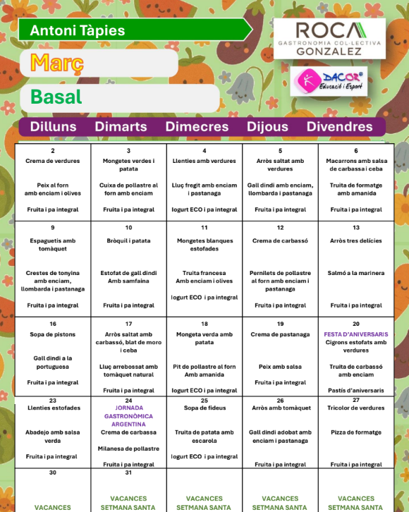 L’AFA és la que gestiona el contracte cada any, revisa els menús mensualment i aporta idees i millores a la gestió del servei.