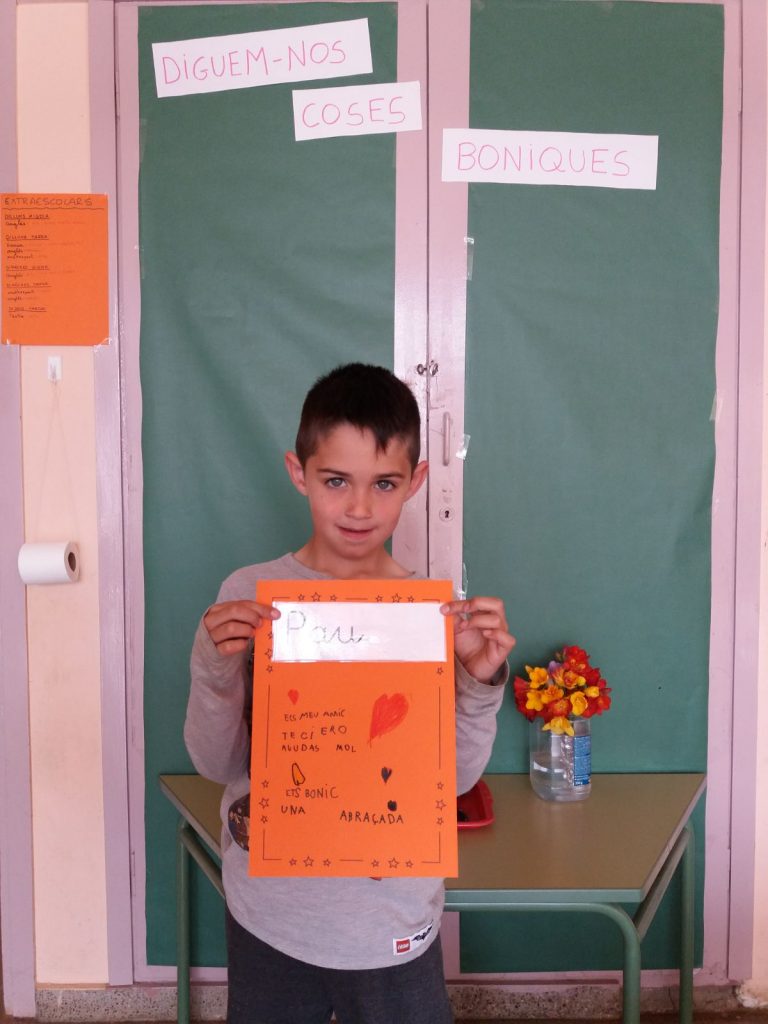 Els nens i nenes de P5 hem començat un nou projecte. Cada dia que fem projecte diem coses boniques a un nen o nena de la classe i les deixem escrites en un full. També per parelles ens hem dit i n’hem fet coses boniques!