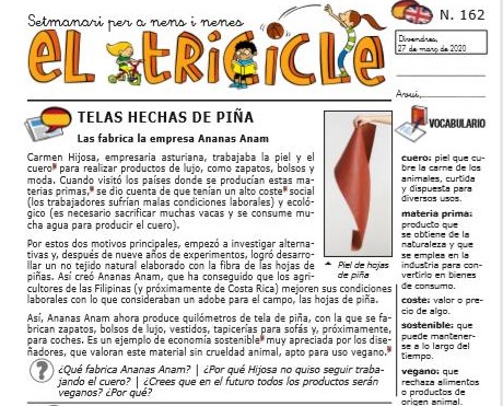 HOY OS PROPONEMOS UNA LECTURA DEL “TRICICLE” EN LENGUA CASTELLANA. COMO PODÉIS VER ESTÀ EN LETRA DE IMPRENTA. POR TANTO ES IMPORTANTE QUE SI HAY NIÑOS Y NIÑAS QUE NECESITAN AYUDA, LOS ADULTOS OS PUEDEN AYUDAR A LEERLO O QUE OS LO LEAN (DEBÉIS IR INTENTÁNDOLO POCO A POCO!!)