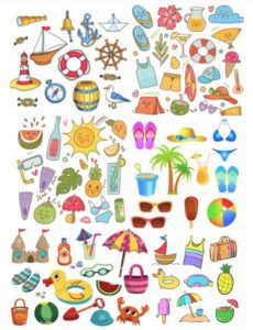 AVUI PER COMENÇAR PODEU JUGAR A BUSCAR DINS AQUEST GARBUIX DE COSES ESTIUENQUES. PODEU TROBAR TOTES LES BALENES? QUANTES N’HI HA? PODEU COMPTAR TANT COM VULGUEU O POTSER TENIU MÉS GANES D’ESCRIURE TOT EL QUE HI VEIEU?