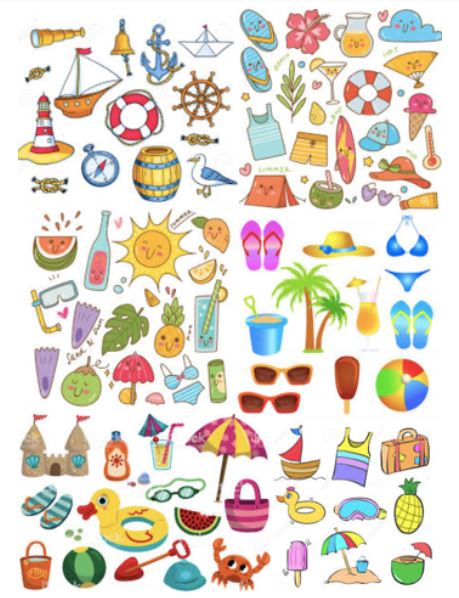 AVUI PER COMENÇAR PODEU JUGAR A BUSCAR DINS AQUEST GARBUIX DE COSES ESTIUENQUES. PODEU TROBAR TOTES LES BALENES? QUANTES N’HI HA? PODEU COMPTAR TANT COM VULGUEU O POTSER TENIU MÉS GANES D’ESCRIURE TOT EL QUE HI VEIEU?