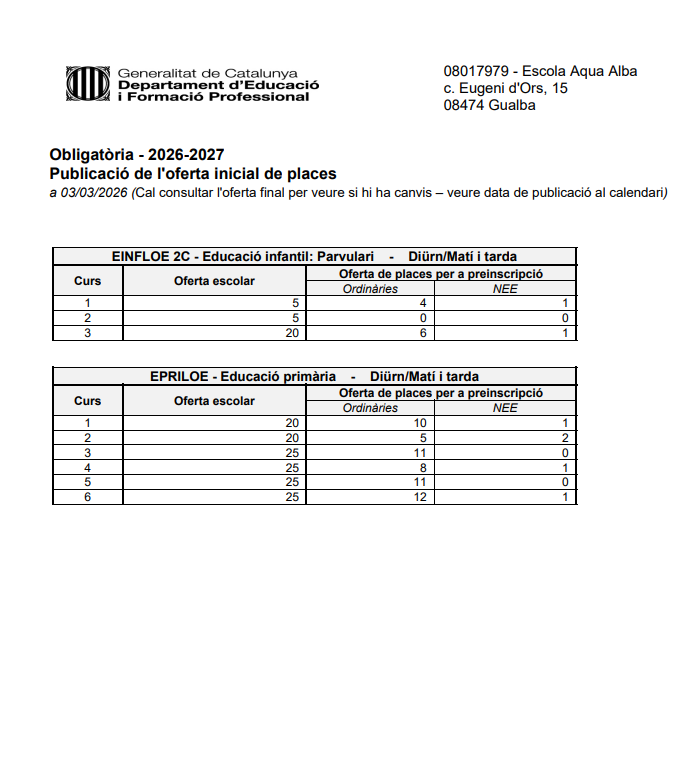 Publicació de l’oferta inicial