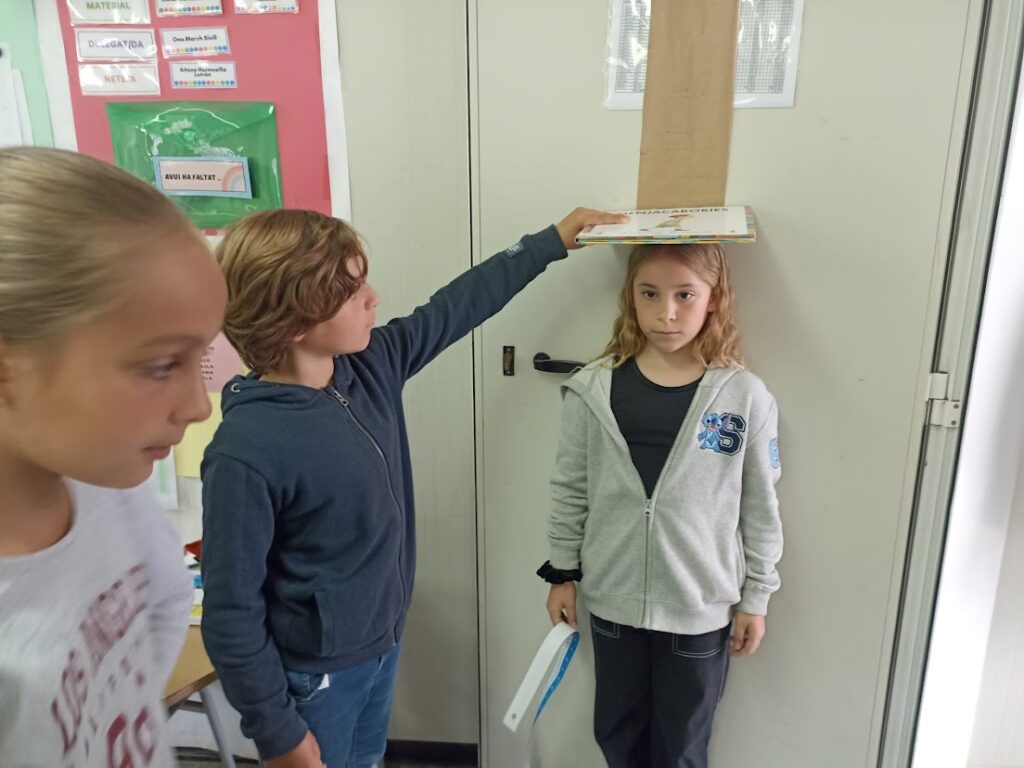 L’alumnat de 4t ens hem pres les pulsacions, ens hem mesurat l’alçada ens hem pesat. Amb les dades hem fet