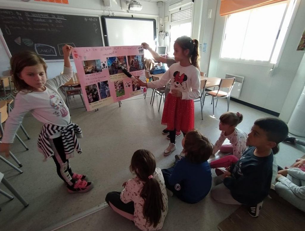 A l’aula de 1r, avui ha estat el torn de la Neu i l’Alessia. Per una banda, la Neu ha