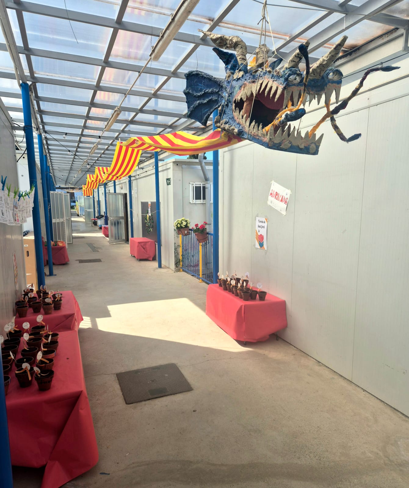 Avui el passadís de l’escola s’ha despertat amb un toc màgic: el drac ens acompanya en aquest dia tan especial! 🐉📚 Les manualitats que han creat els nostres nens i nenes omplen l’espai amb colors, creativitat i molta il·lusió.