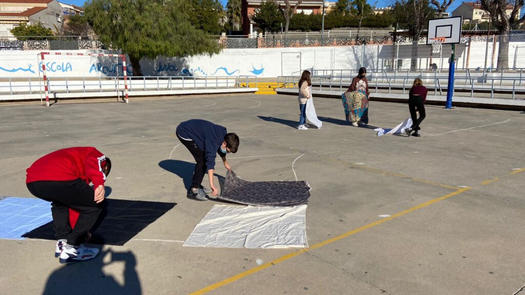 L’alumnat de #6è sortim al pati per treballar en grups les superfícies📏