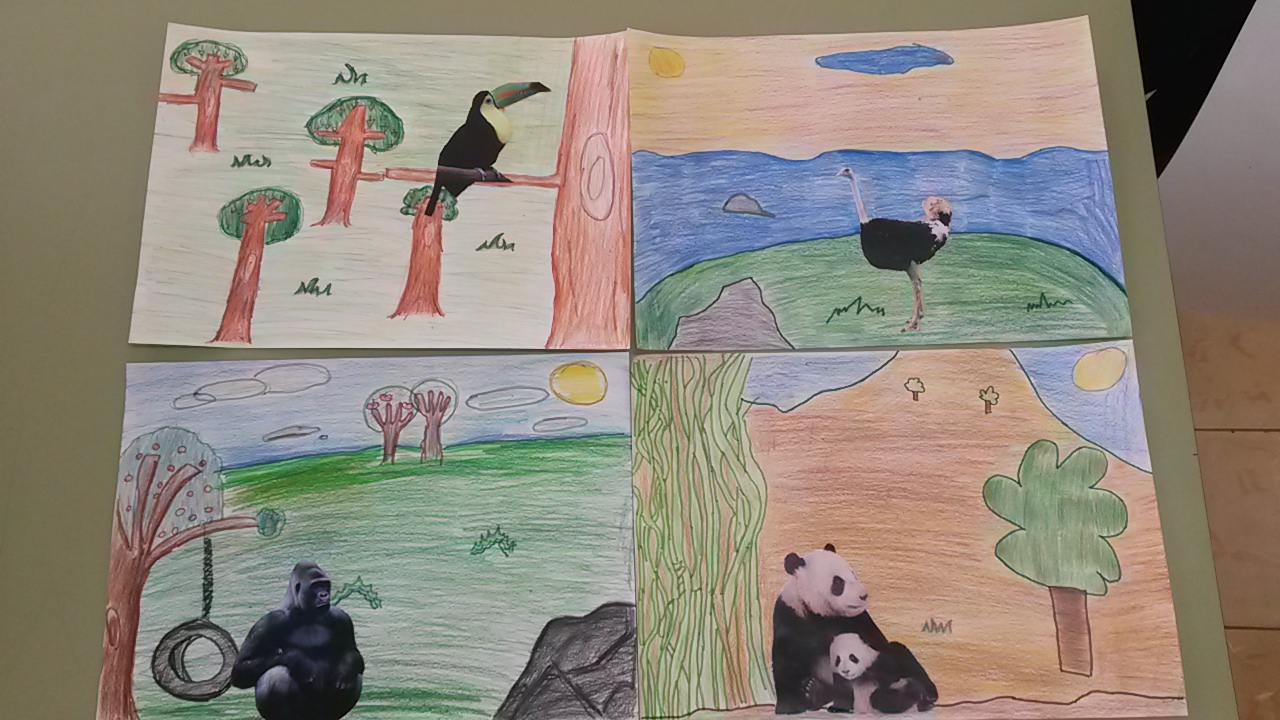 A l’hora de plàstica hem dibuixat l’hàbitat de diferents animals, ho hem pintat i hem enganxat una foto de l’animal que ens ha tocat. Esperem que us agradi!