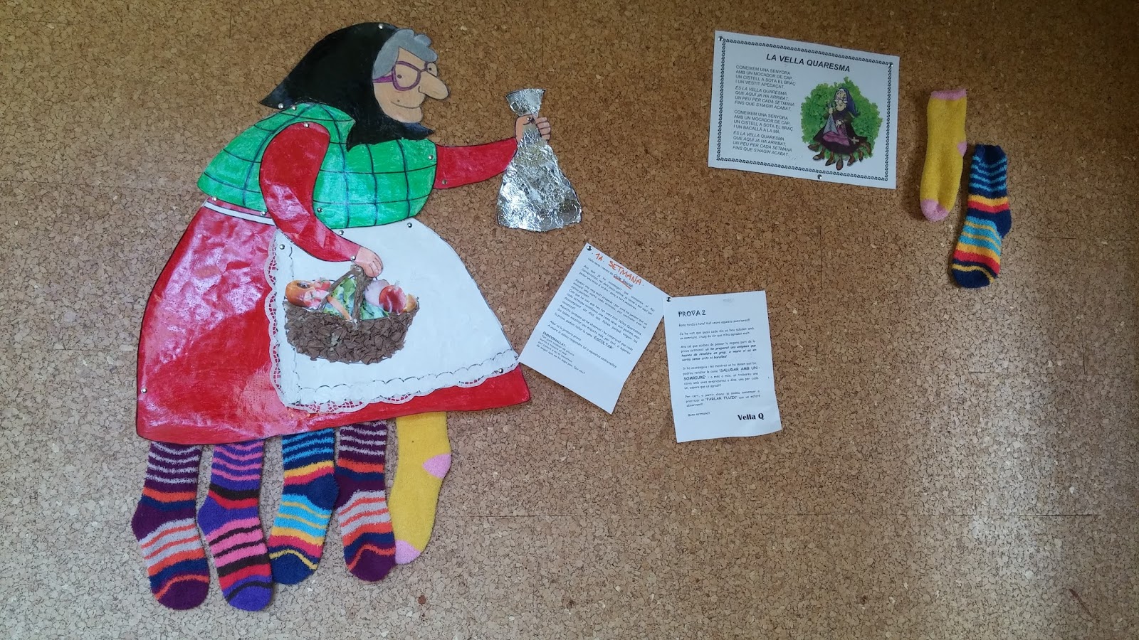 S’ha acabat carnaval i ja tenim la Vella Quaresma aquí! Cada divendres ens proposa alguna activitat que hem de resoldre i si hem estat bons potser tenim algun premi i tot! Mireu quins mitjons més divertits té per cames!