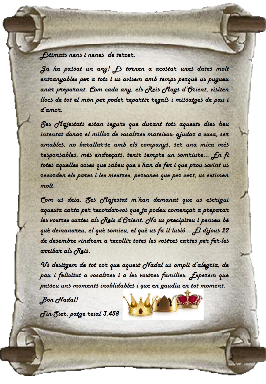 ENS HA ARRIBAT UNA CARTA DEL PATGE REIAL!Aquest dilluns passat, quan vam entrar a la classe, vam tenir una gran sorpresa… Teníem una carta del patge reial penjada a la nostra pissarra!