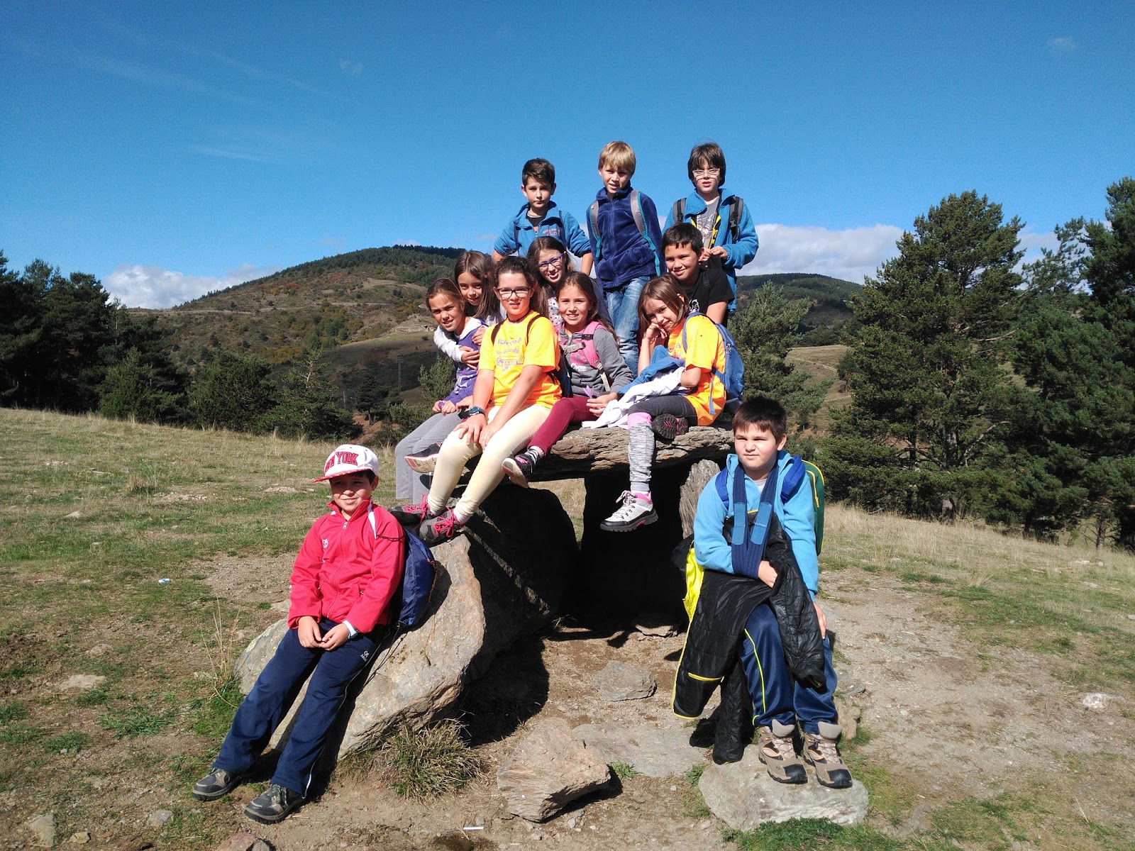 Després hem anat al dolmen del Paborde que està a la Molina. Allà hem parlat dels diferents vestigis prehistòrics que coneixem, hem comentat per a què servien els dòlmens i també hem explicat com s’ho feien a la prehistòria per construir-los.