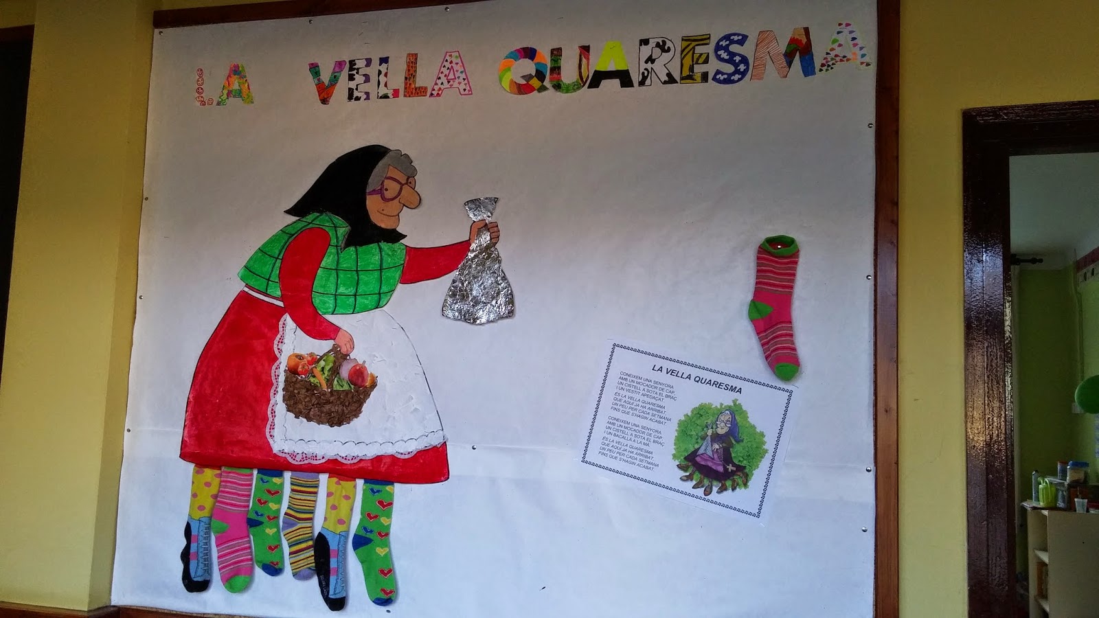 ARRIBA LA QUARESMA admin23/03/15 Acabat Carnaval ha començat el compte enrere per Pasqua. Els nens i nenes de Cicle Inicial ja tenim la Vella Quaresma a punt! Mireu que “xula”! Si voleu veure com li hem anat traient mitjons i alguna prova que ens ha portat podeu clicar la foto.