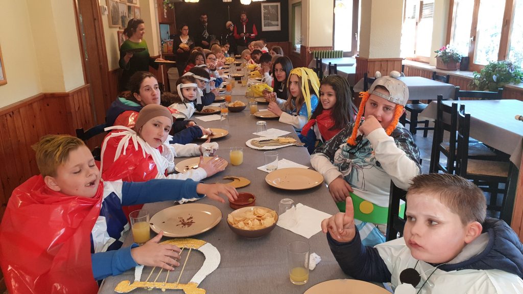La temàtica d’aquest any ha estat Astèrix i Obèlix i tots els alumnes i mestres hem sortit al carrer ben guarnits a demanar Rostita. Els alumnes d’Infantil i cicle inicial han esmorzat a Casa Patxi i els alumnes de cicle mitjà i superior a la plaça del Casino on l’Ampa ha repartit coca i xocolata!