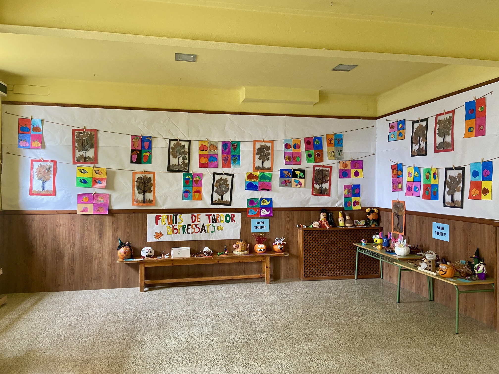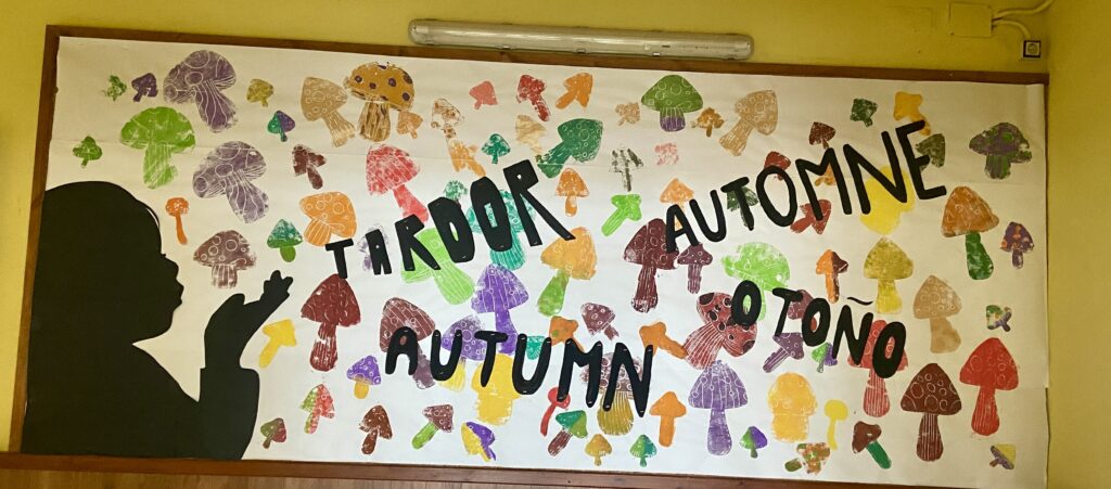 Els alumnes de C.S, durant el mes d’octubre, hem estat fent la decoració de l’entrada de l’escola. Primer, ens han fet fer un dibuix d’un fruit de tardor imitant els quadres de l’ Andy Warhol, quan vam acabar de dibuixar i pintar amb ceres el vam envarnisar. Després vam fer un mural amb estampaciò de bolets amb una nena que esta bufant la paraula “tardor” en diferents idiomes. També vam fer uns abres de tardor amb fulles naturals, vam posar les fulles sobre d’aironfix, amb un marc de cartolina de colors de tardor i vam dibuixar la silueta de un arbre amb permenent negre. Us agrada? (Autors: Daniela i Youssef)