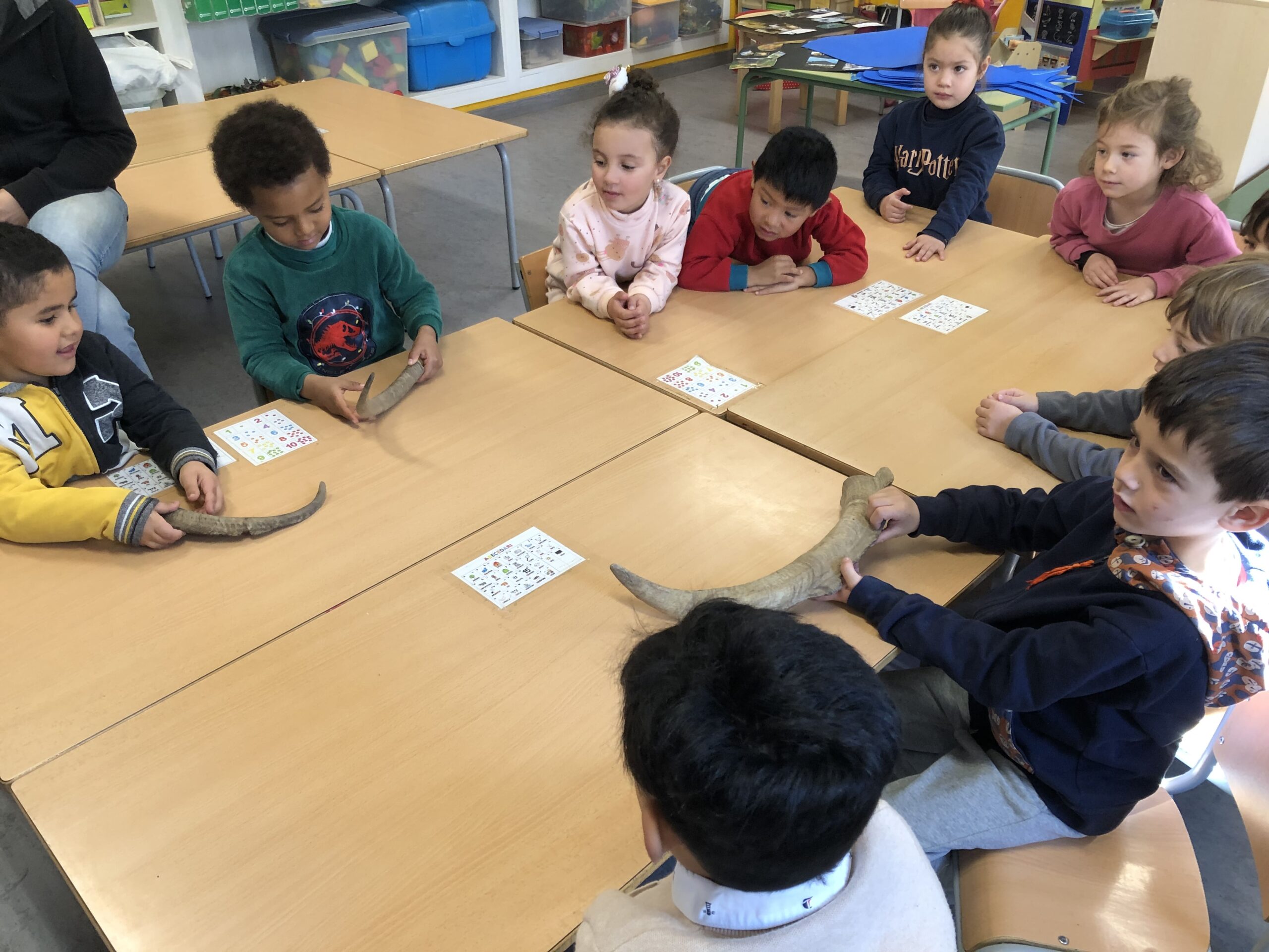 I també ens va portar banyes de cabres per poder-les veure ben d’a prop!
