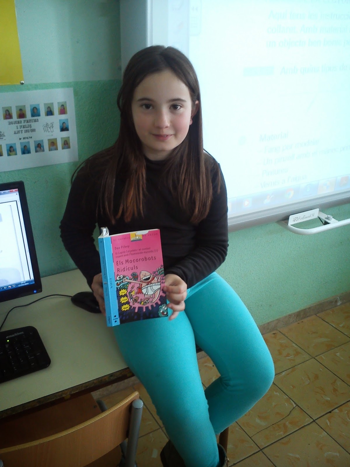 Avui la Berta ens ha portat el seu llibre! Es tracta de “Els Mocorobots ridículs. El Capità Calçotets i el combat cruent amb l’hominoide mucoide (II)”.