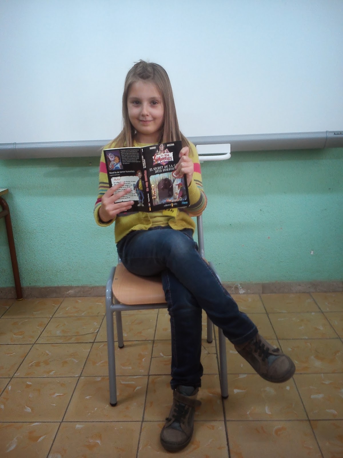 L’ha escollit perquè en va llegir el resum de la contraportada i li va agradar molt. Ens n’ha llegit tros i ens ha explicat que riu molt llegint-lo!