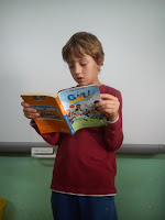 Avui li ha tocat el torn al Pol, que ens ha portat un llibre de la col·lecció “Gol”. Diu que li va “cagar” el Tió i ens destaca que combina prosa amb pàgines de còmic. Ens n’ha llegit un fragment i n’hem fet un dictat!