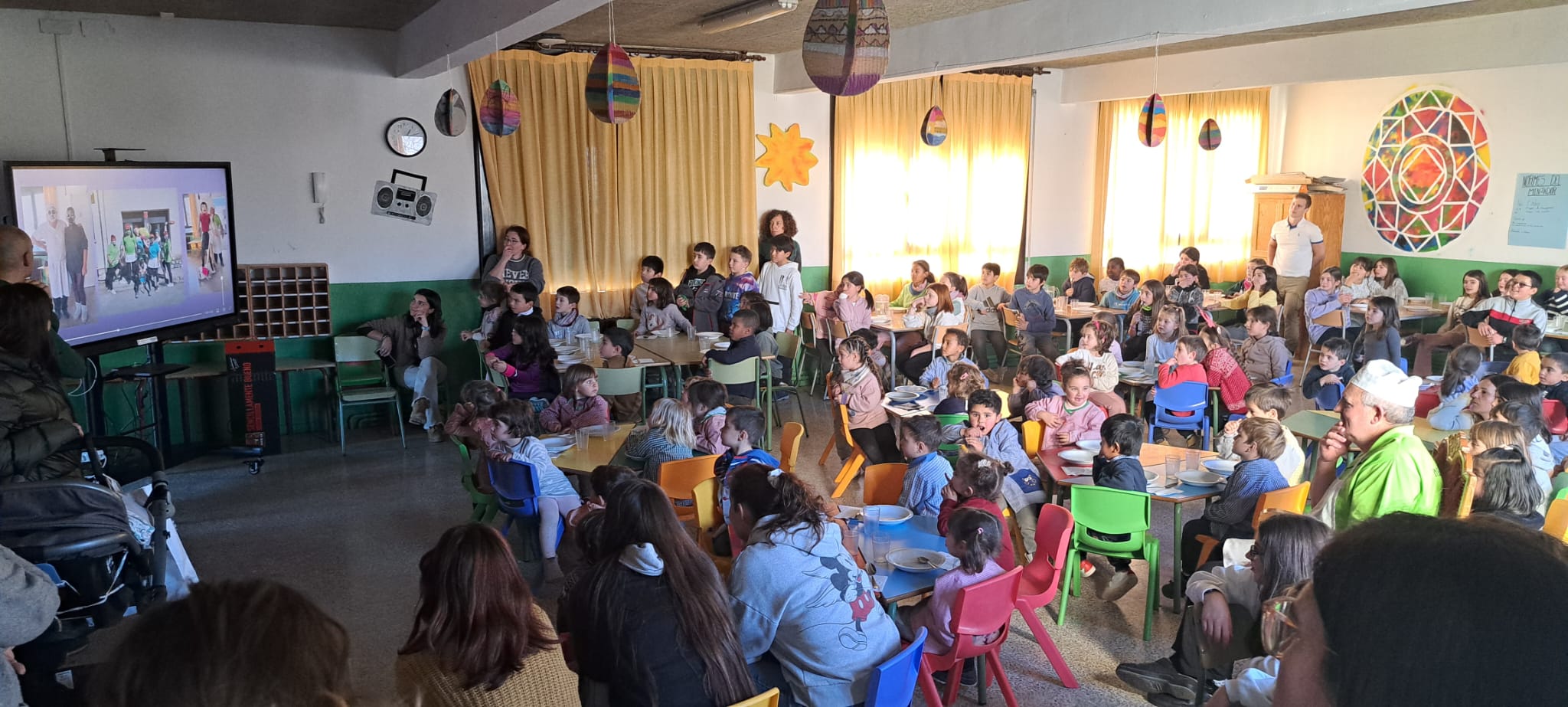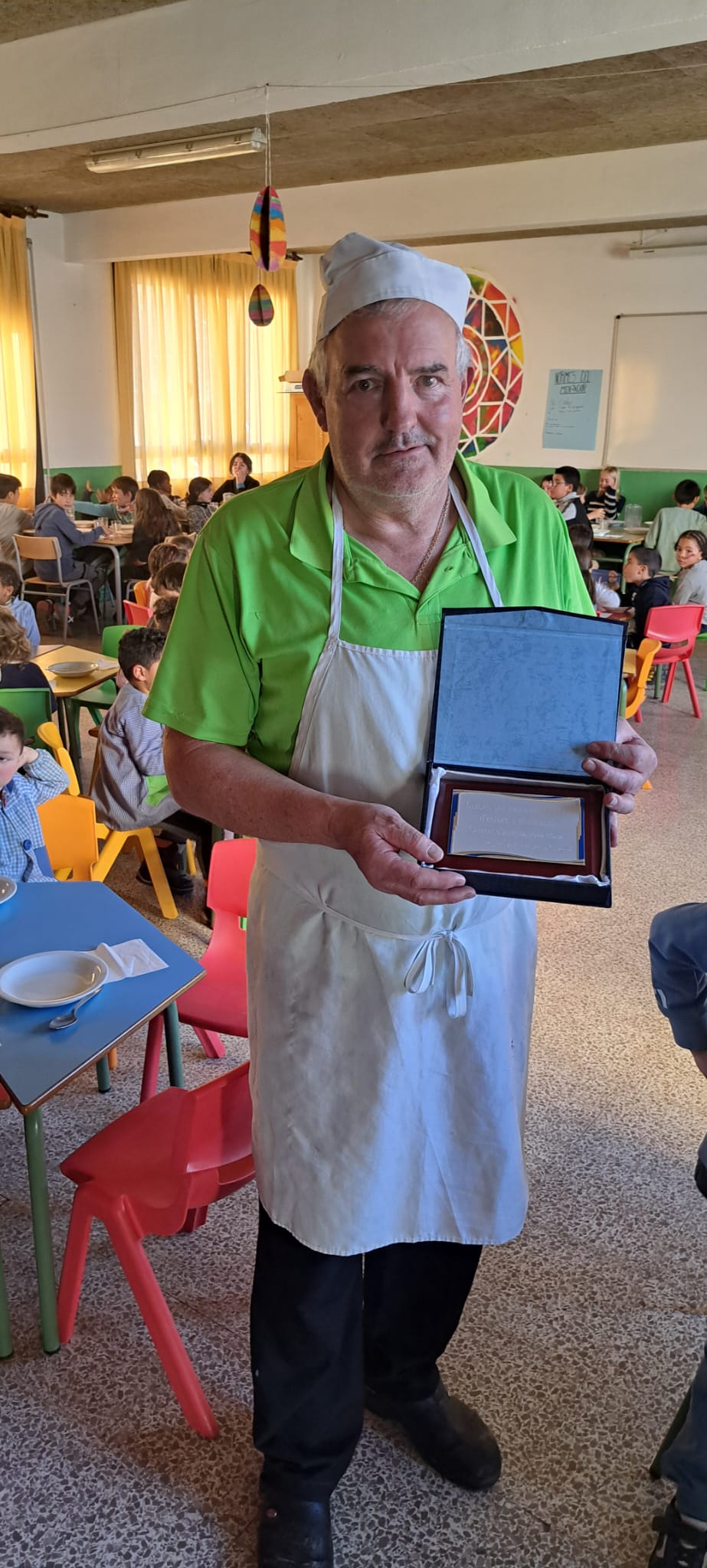 L’últim dia de classes abans de les festes de Nadal vam fer una sorpreseta al nostre cuiner Jose ja que es jubilava!… ha estat treballant a la nostra escola 17 anys i ens ha cuidat moltíssim!… durant tot aquest temps sempre s’ha preocupat d’oferir-nos el millor servei, ens ha fet uns dinars boníssims, ha adaptat els menús a les necessitats de tothom, també ens ha fet entrepans per esmorzar quan els hem necessitat, quan hi ha hagut alguna celebració especial (com quan l’escola va fer 50 anys o alguna xocolatada solidària) s’ha ofert a ajudar-nos voluntàriament, també ens ha ajudat a fer algun taller de cuina amb els alumnes, a coure’ns els panellets per la castanyada, ens ha preparat els dinars de la festa de final de curs… i no només això; quan es van fer les obres de la cuina nova, durant el confinament, va estar sempre al peu del canó preocupant-se que tinguéssim les millors instal·lacions i més adequades a les necessitats del servei de menjador. En definitiva sempre ha fet que ens sentíssim com a casa. Per agrair-li tot l’esforç que ha fet per la nostra escola l’últim dia abans de vacances de Nadal vam anar al menjador per sorpresa, el vam fer seure a la cadira del patge reial i vam passar un vídeo amb un recull d’imatges dels 17 anys que ha estat amb nosaltres; va ser un moment molt emotiu i un munt de nens i nenes es van aixecar a fer-li una forta abraçada!… després l’AFA li va fer un detall de part de totes les famílies de l’escola i també li vam fer entrega d’un missatge molt especial!.
