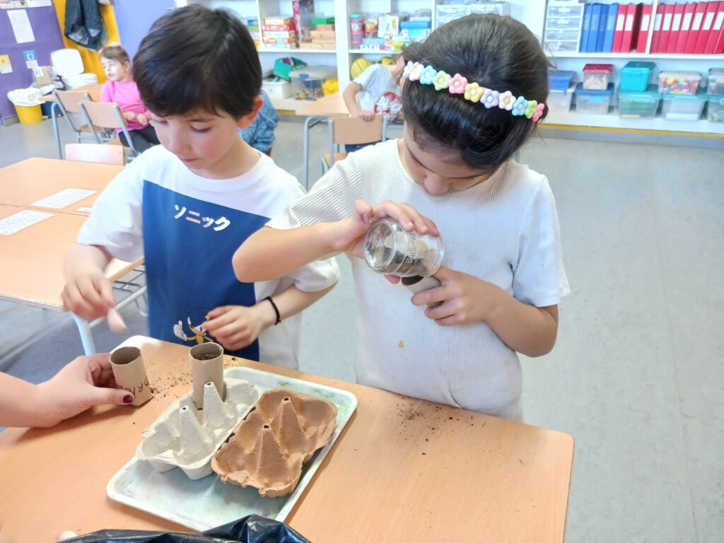 Al cap d’uns dies ja estan a punt. Avisem als de 3r perquè ens ajudin a plantar-los a l’hort.