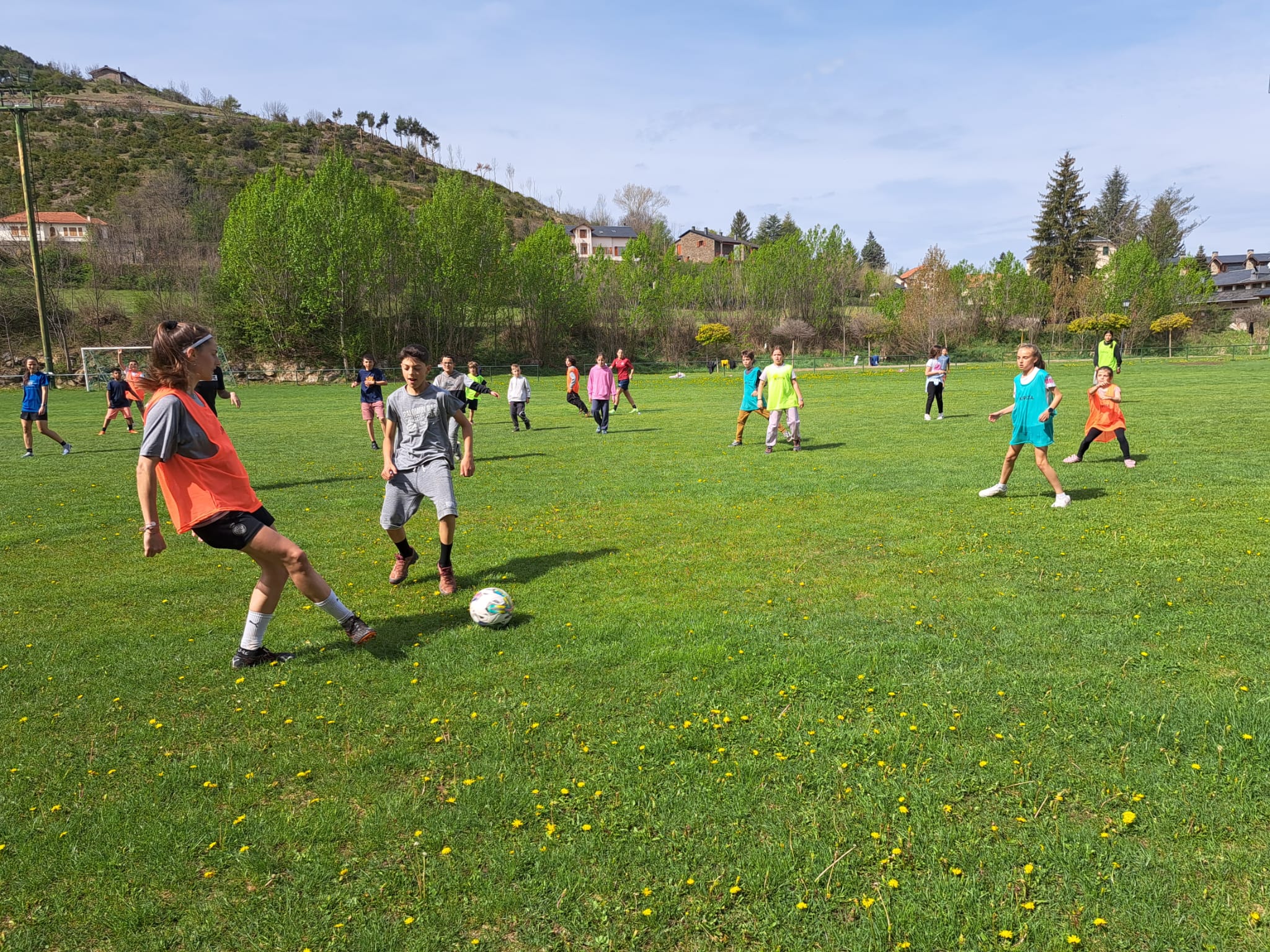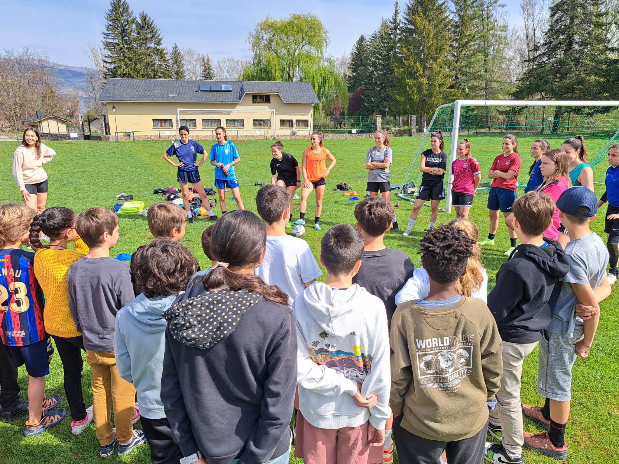 Aquest matí els i les alumnes dels cicles mitjà i superior hem anat al camp de futbol d’Alp a veure l’equip femení KUNITAS que estan fent un stage a Alp per preparar la queens league. Ha estat genial!… hem vist com entrenaven i, fins i tot, ens han convidat a jugar una estona amb elles.