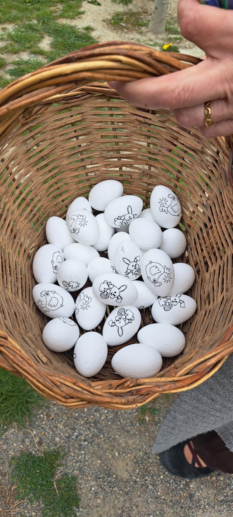 hem arribat al final del cistell i… sabeu què hi havia??? … doncs un munt d’ous de pasqua per repartir-los i pintar-los a casa.
