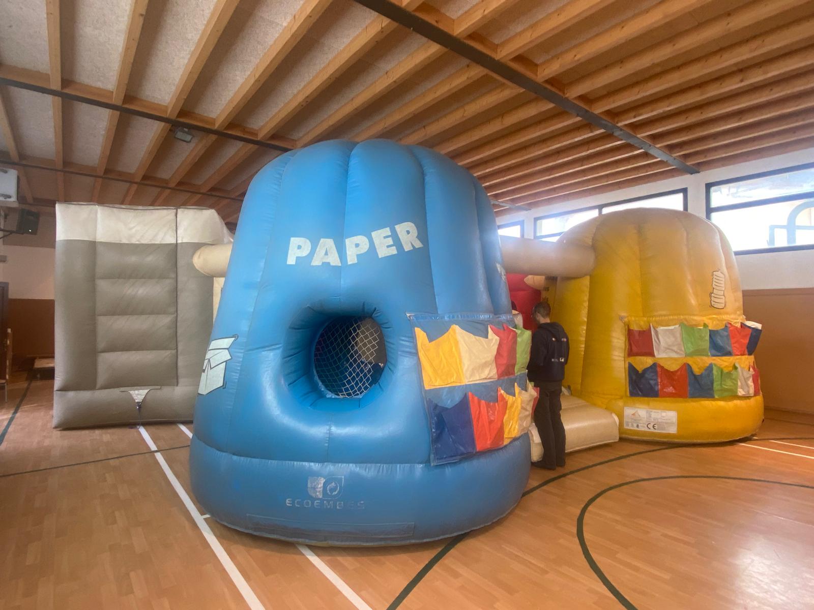 Ahir, durant tot el dia, vam tenir a l’escola un recurs educatiu que ens va agrada molt!… l’inflable de reciclatge.