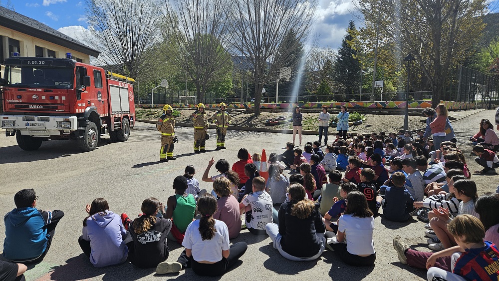 Aquest any vam fer un simulacre diferent, ens vam confinar a les aules, allà vam tancar les persianes i ens vam esperar que arribessin els bombers voluntaris d’ Alp. Al principi no sabíem que passava perquè el so de la sirena era diferent. Després tots vam sortir al pati on ens van fer una explicació molt interessant sobre els diferents tipus de simulacres: evacuació i confinament.