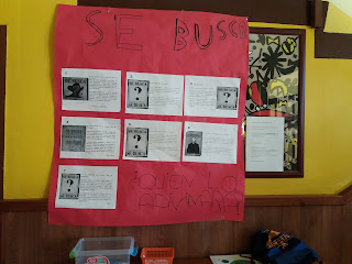 Durant aquest curs, a castellà vam treballar la descripció. Per acabar, per parelles vam fer la descripció de mestres de l’escola i se’ns va ocórrer proposar a la resta de nens i nenes de l’escola un joc: endevinar a qui corresponia cada descripció.