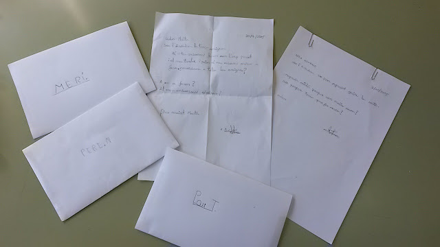 LA CARTA Cicle Mitjà23/10/15 A 3r estem estudiant la tipologia textual de la carta, hem vist l’estructura que tenen i ens hem escrit cartes entre els companys de classe. Ens ha fet molta il.lusió rebre les cartes i contestar-les!