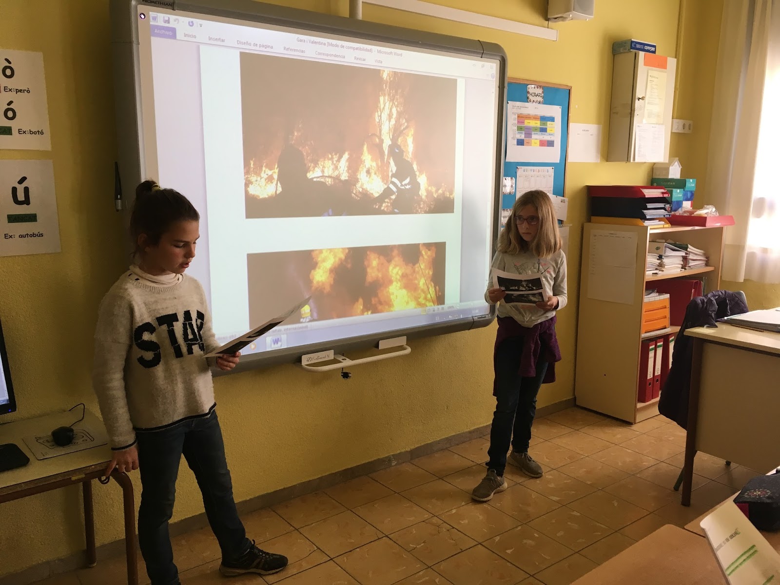A medi aquest trimestre estem treballant el temps i el clima. En grups, els nens i nenes de 4t han preparat uns treballs sobre les diferents catàstrofes naturals per tal de prendre’n conciència. Han fet una exposició davant la resta de la classe. Les catàstrofes que han treballat han sigut: