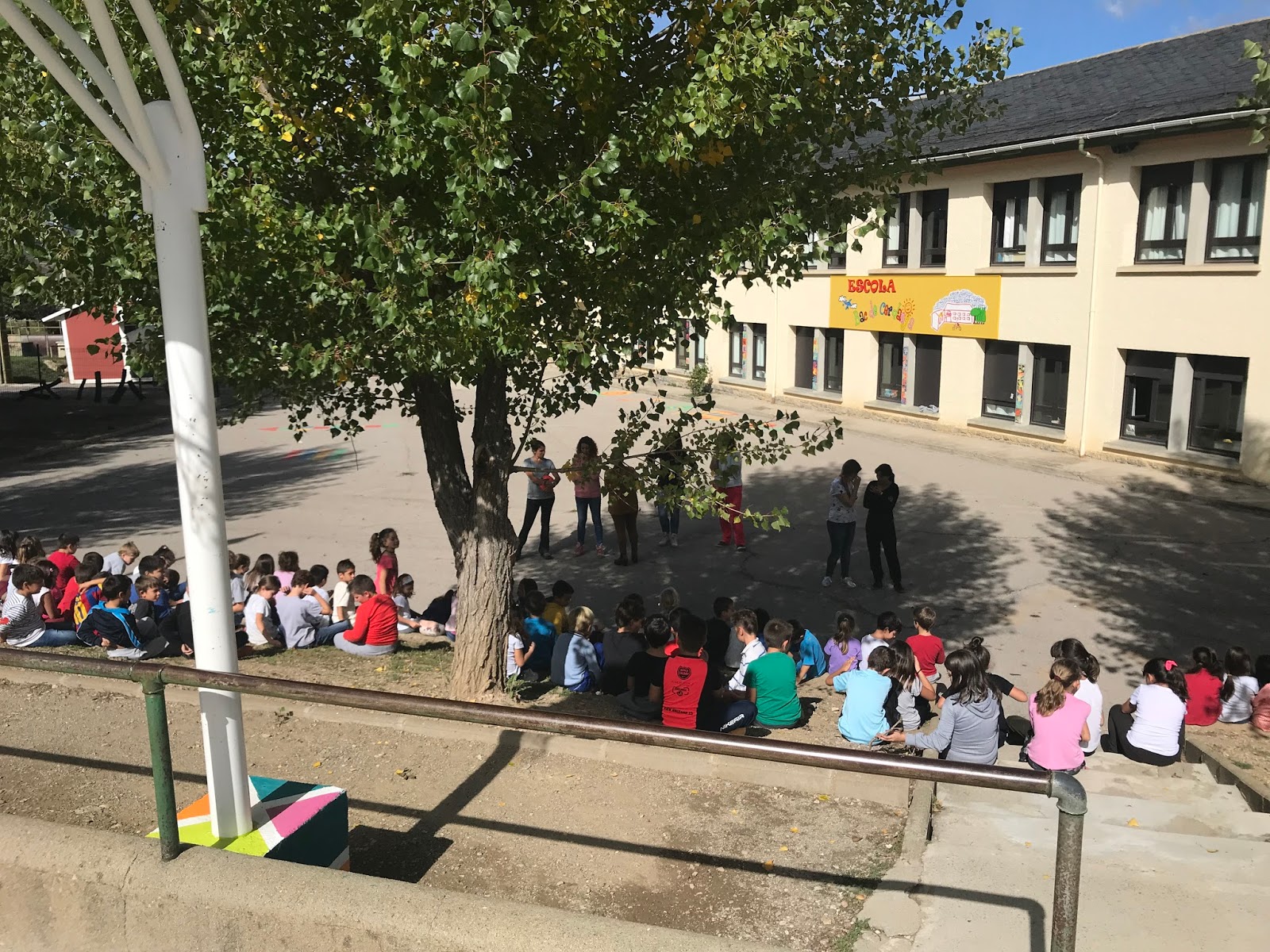 Des de l’escola, lloc a on sempre es treballa el valor del diàleg davant la violència, hem decidit sortir també al pati de l’escola però sense lectures de manifestos ni discursos, simplement amb el nostre silenci i l’esperança que els valors que volem transmetre a l’escola arribin cada dia més lluny.