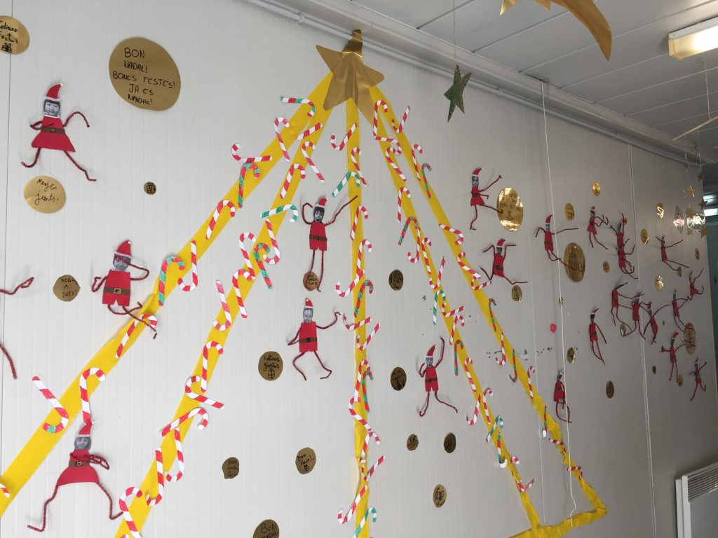 Com ja és tradició els nens i nenes de la nostra escola reben una carta del tió avisant que ja ha arribat però que l’hem de buscar i això vam fer amb totes les nostres ganes, il·lusió, energia, alegria…i no vam parar fins trobar-lo a dalt del tobogan del parc de fora!!!!!