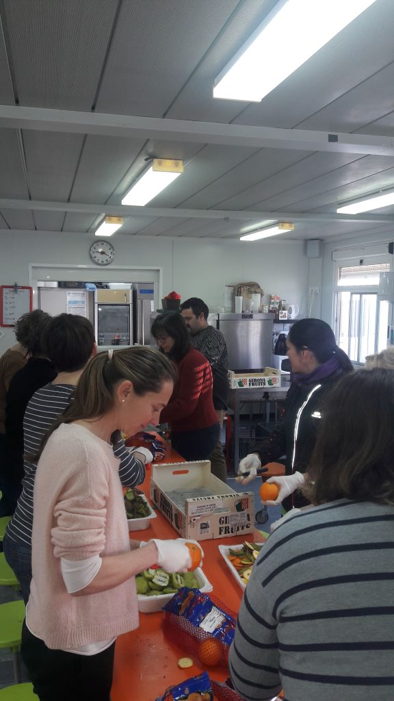 Gràcies als pare, a les mares i a les iaies que poden entrar a 1a hora a preparar la fruita: podem a l’hora del pati esmozar fruita super rica: kiwis, taronges, pomes, peres i plàtans…