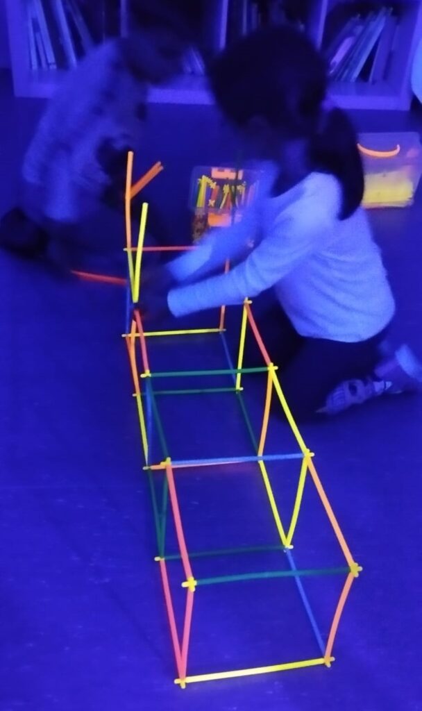 AL TALLER DE LLUM JUGUEM AMB LA LLUM FOSCA, AMB ELS OBJECTES FOSFORESCENTS, AMB LES OMBRES… I DESCOBRIM ELS EFECTES QUE ES PRODUEIXEN AMB ELS DIFERENTS MATERIALS, SEMPRE AMB LA PREGUNTA AL CAP: I QUÈ PASSARÀ SI…?