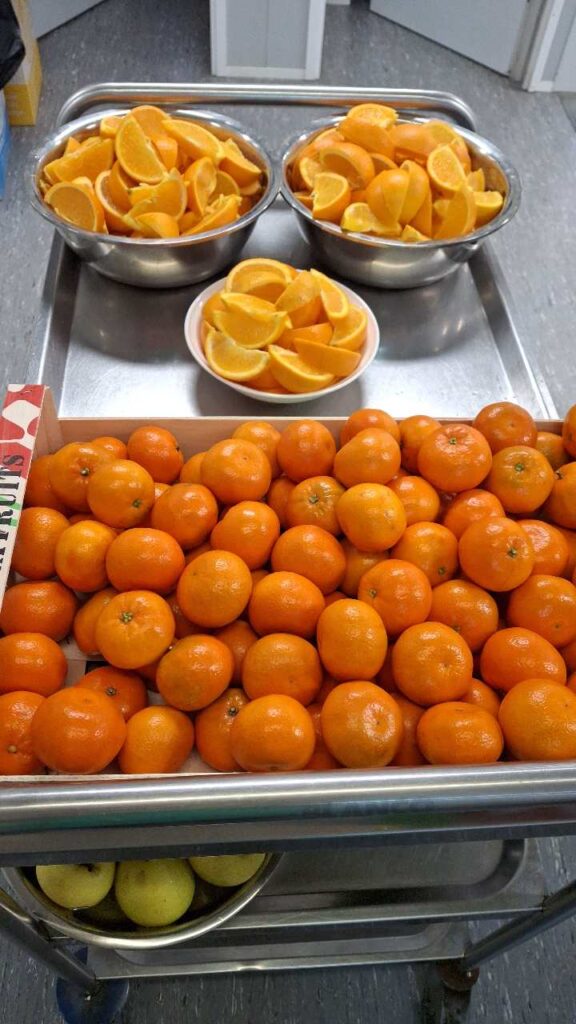Cada dia a l’hora del pati, si ens ve de gust podem prendre un got de llet. A més a més, quan les mestres avisen a les famílies durant uns dies també esmorzem fruita que ens preparen de manera que ens venen moooolt de gust tastar!