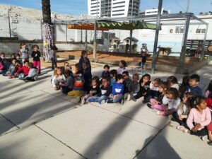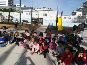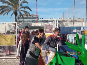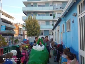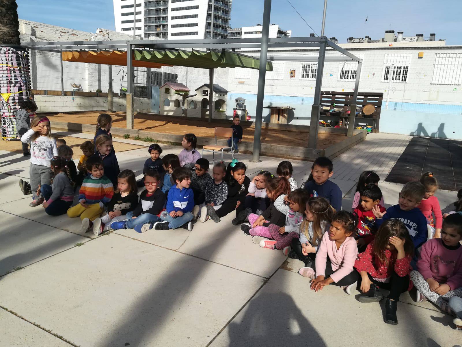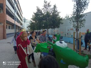 Ddesprés Educació Infantil han sortit al pati a veure l’obra de Sant Jordi que li han preparat els seus mestres i les seves mestres.