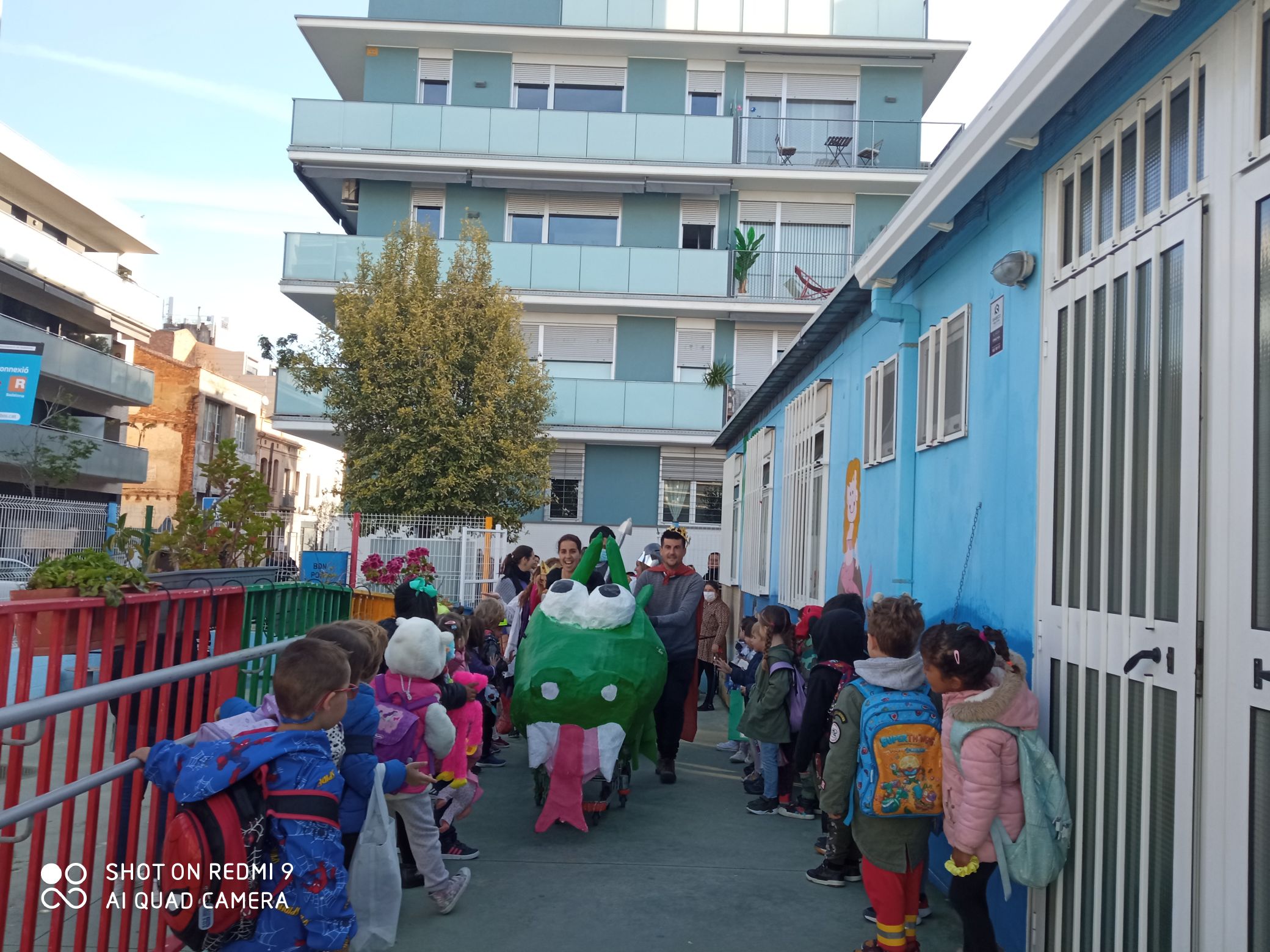 Avui ha estat un dia molt especial: a primera hores els mestres i les mestres han rebut als infants disfressats de la Llegenda de Sant Jordi.