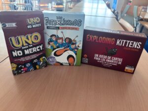 molts divertits,com el joc del UNO,EXPLODING-KITTENS i els joc dels FUTBOLÍSSIMS,i