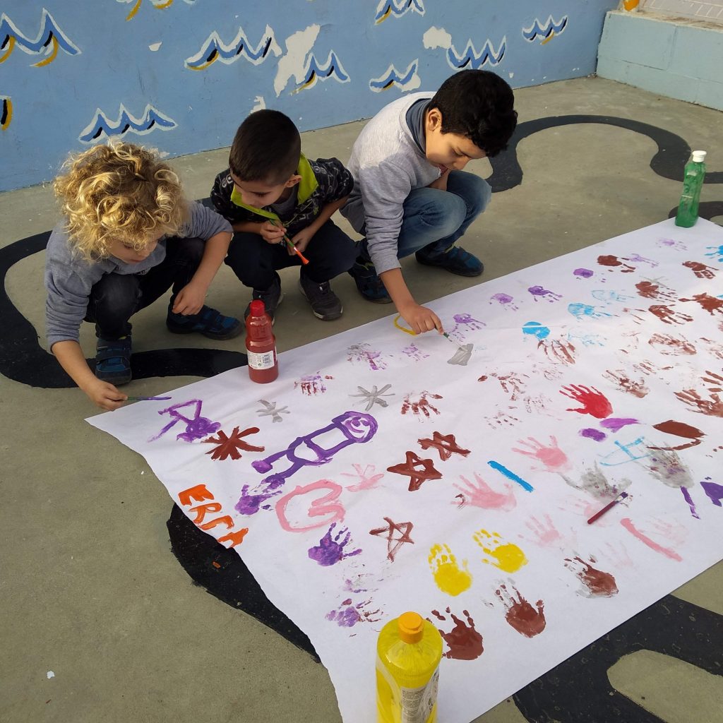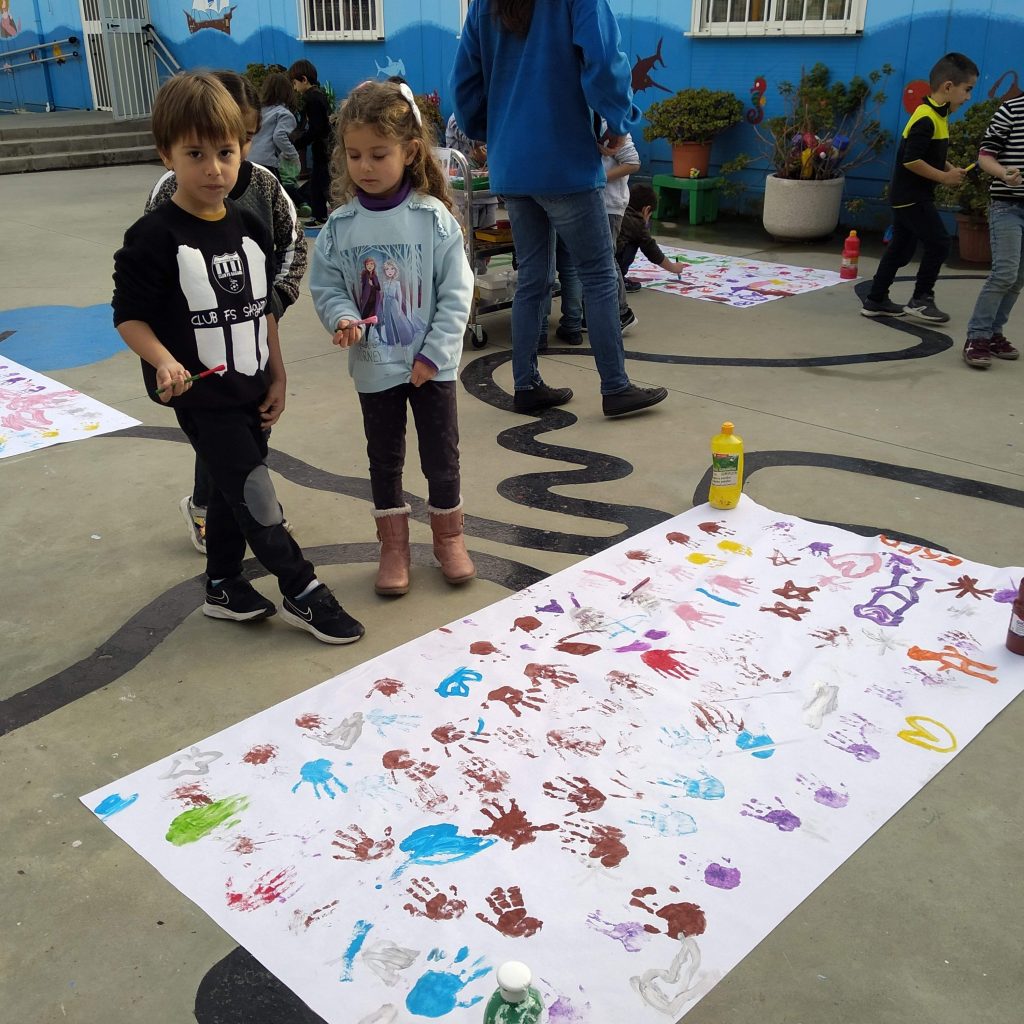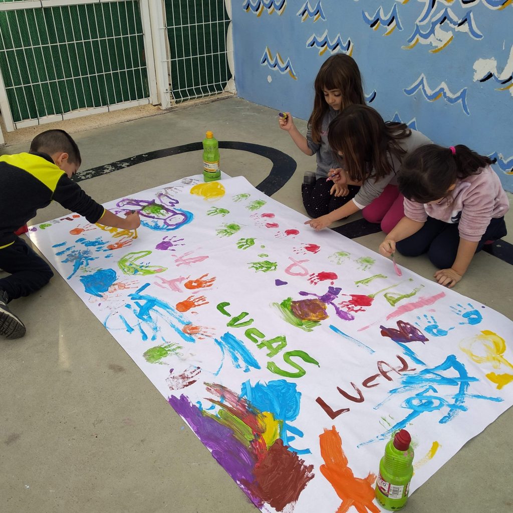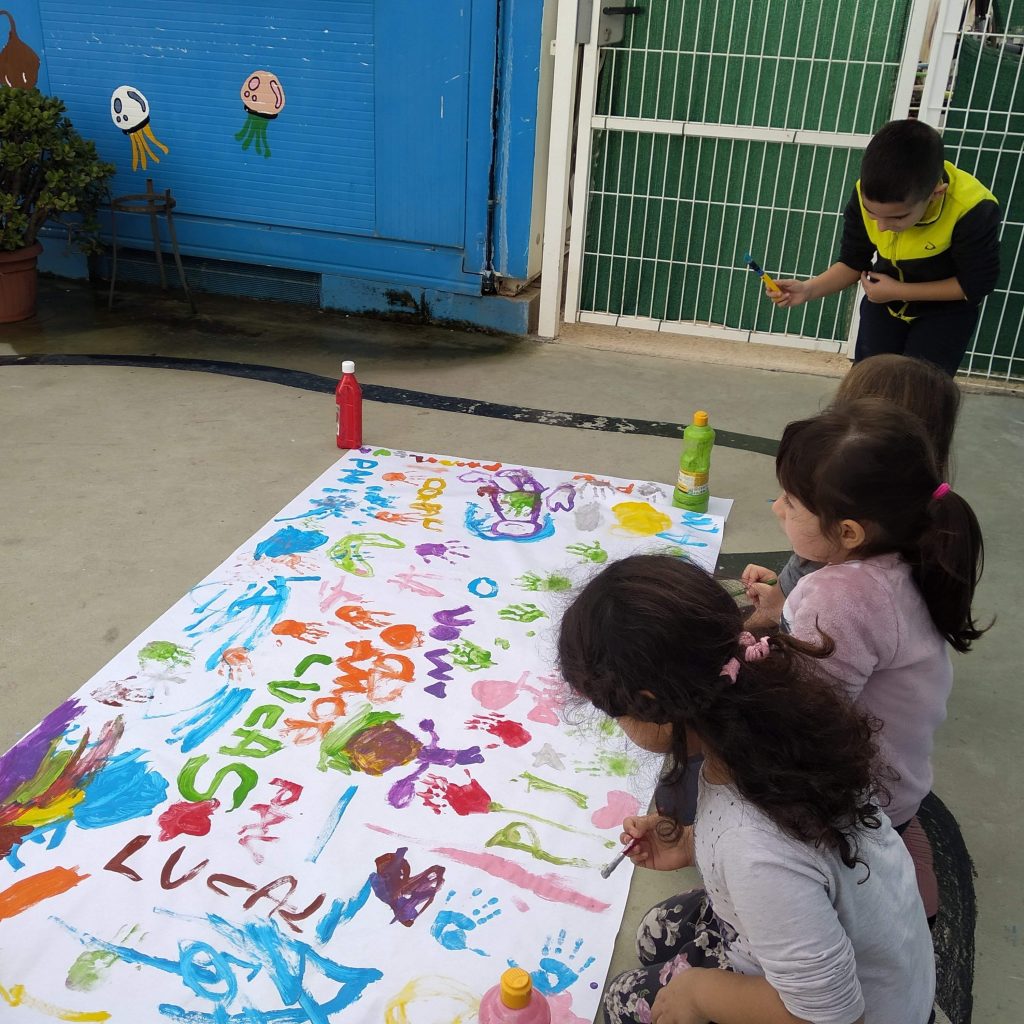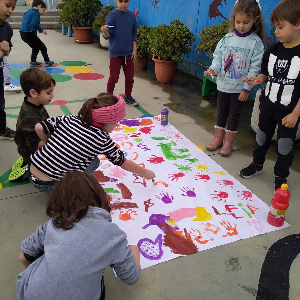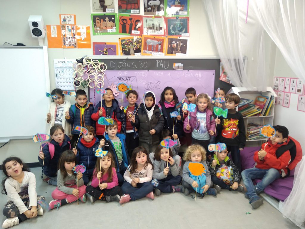 El passat 30 de gener vàrem celebrar el dia de la PAU cantant plegats al pati la cançó “Som nens i nenes,homes i dones del demà.. ” també vam participar en la creació del mural col.lectiu. Aquí ens podeu veure fent les nostres aportacions!!