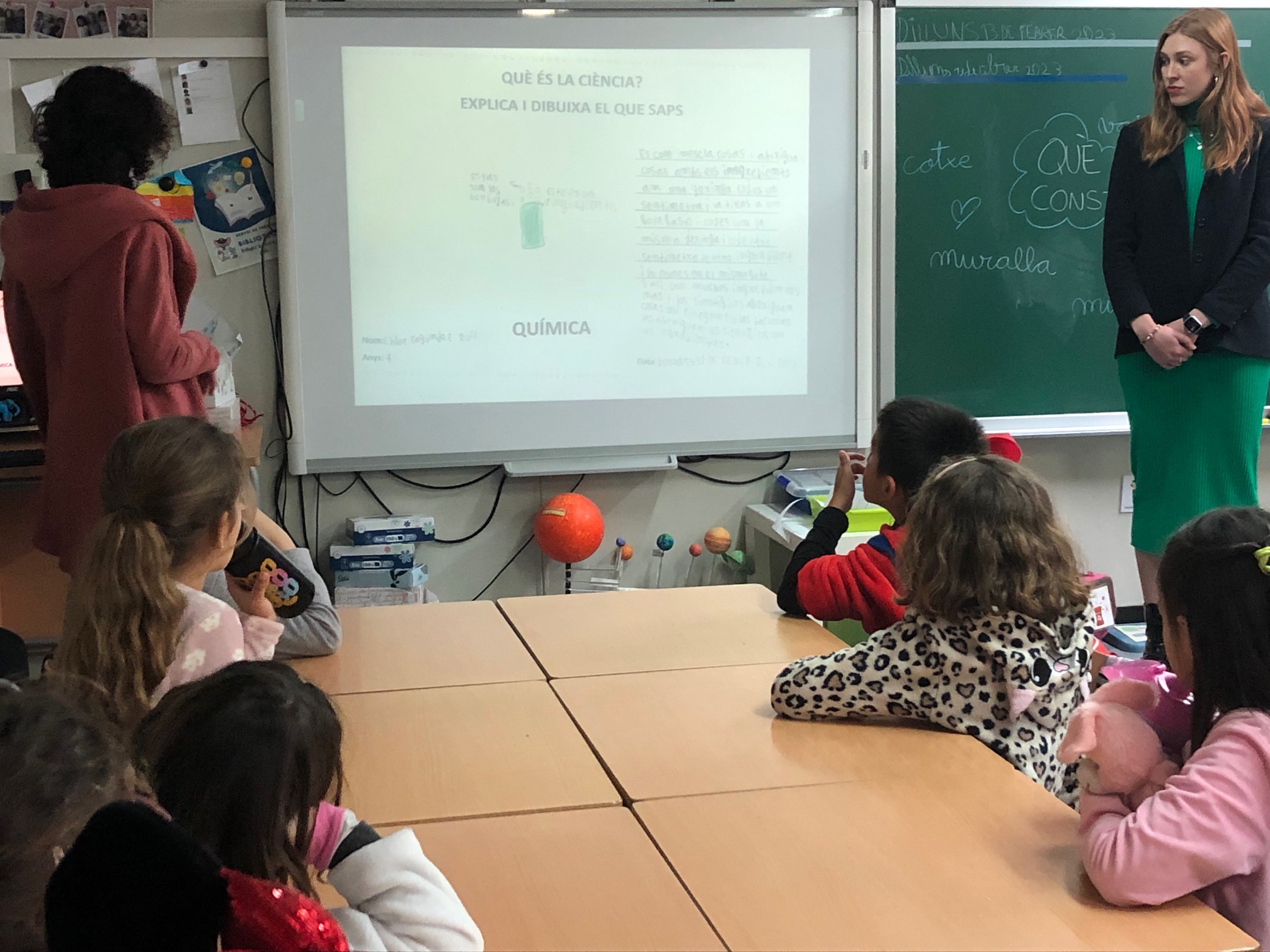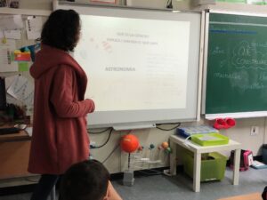 Elles ens han explicat, a partir d’uns dibuixos i reflexions que vam fer previament a la seva visita sobre què és la ciència, què és i a quantes coses es dedica la ciència. I com podem tots i totes arribar a ser científiques i científics, només ens han dit que cal molta curiositat, perquè has d’observar, pensar i fer-te preguntes….