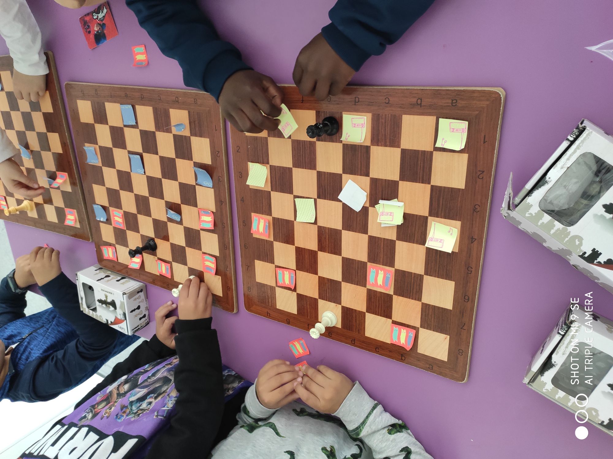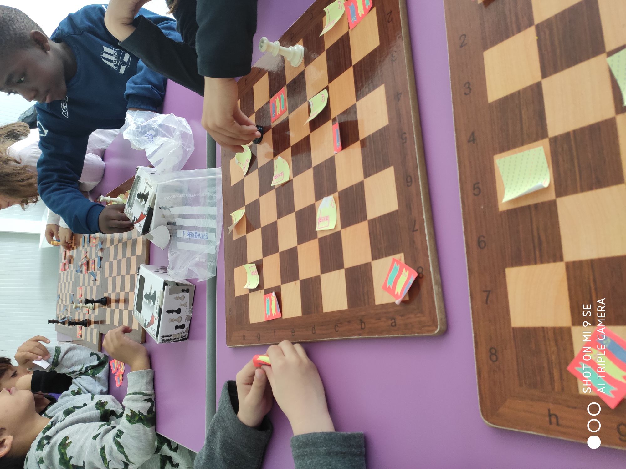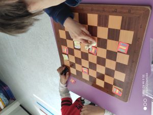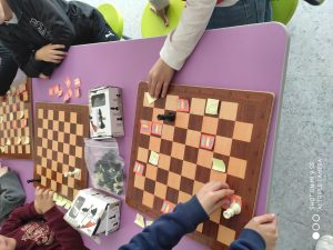 ESCACS: CONTINUEM INTRODUINT FIGURES Feu un comentari / Per admin / 10 de març de 2020 / General Portada Primària PROMOCIÓ 21-29 2n / Escacs a cicle inicial, Promoció 2016-24 Avui… li ha tocat a la Dama que es pot moure per tot arreu: files, columnes, diagonals, i pot caminar i córrer! Hem fet un joc on haviem de capturar diferents postits de colors dels nostres companys/es. Estem molt concentrats! mireu, mireu…