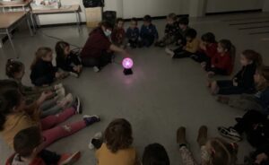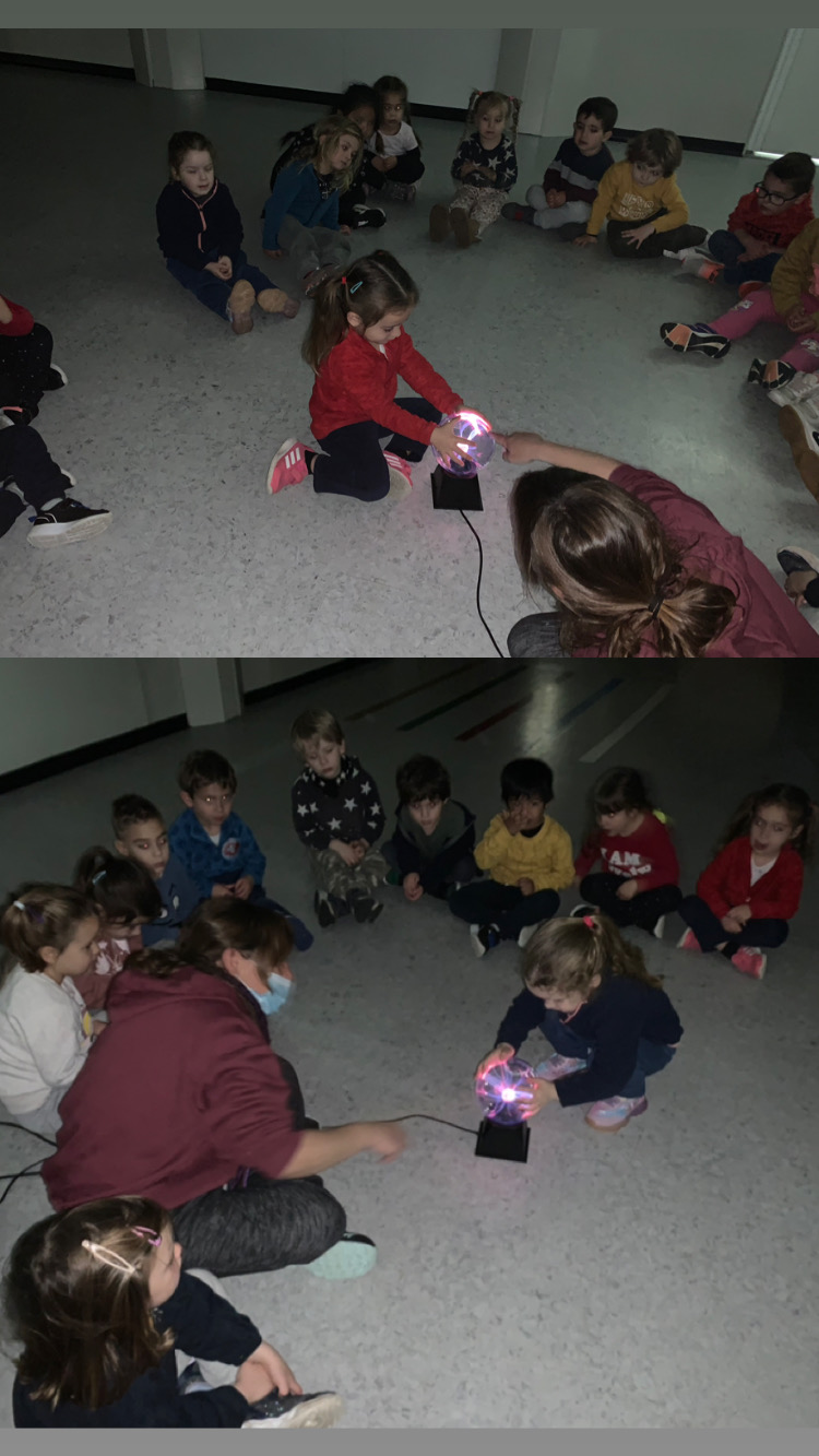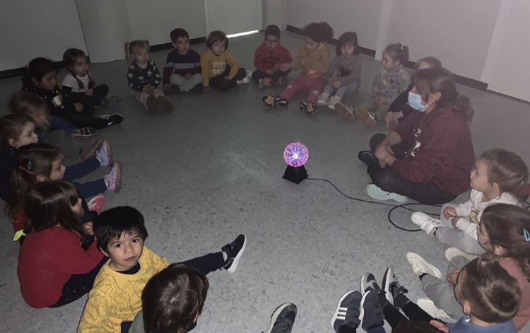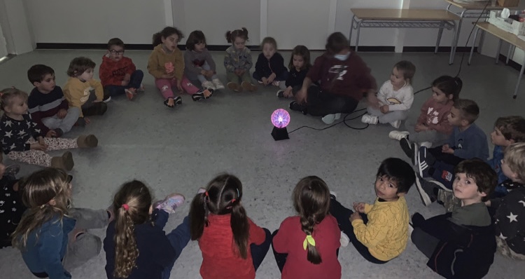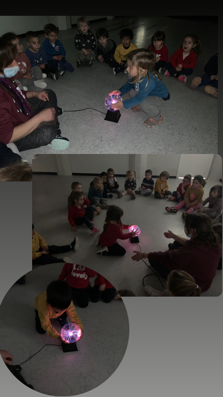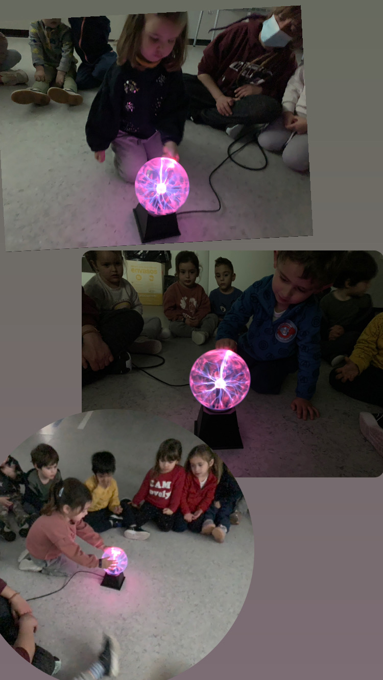 La classe dels pops fa uns dies, després de la sessió de psicomotricitat, vam poder gaudir d’una estoneta amb una llum de plasma electrostàtica sensible al tacte que va compartir amb nosaltres una companya de la classe de p4.