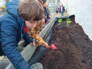 Gràcies famílies per ajudar a tirar endavant l’hort! L’endemà els infants de P4 van anar a regar amb el Ricard tot allò que havien plantat.