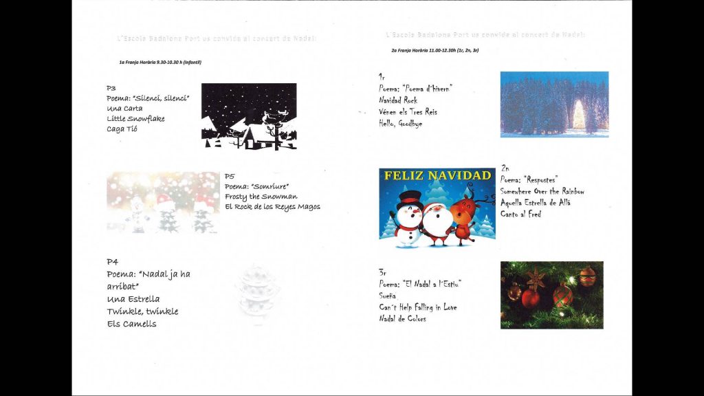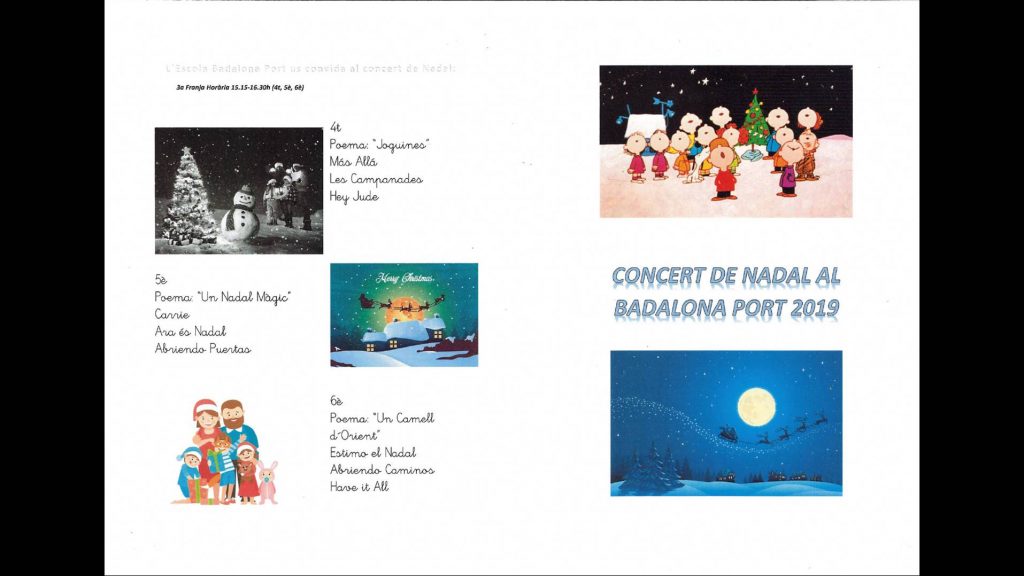 PROGRAMES NADALES 2019 Feu un comentari / Per admin / 18 de desembre de 2019 / General Infantil Portada Primària / Curs 2019/20, Educació Infantil, Nadal, primària AQUÍ TENIU EL PROGRAMA DEL CONCERT DE NADALES 2019.