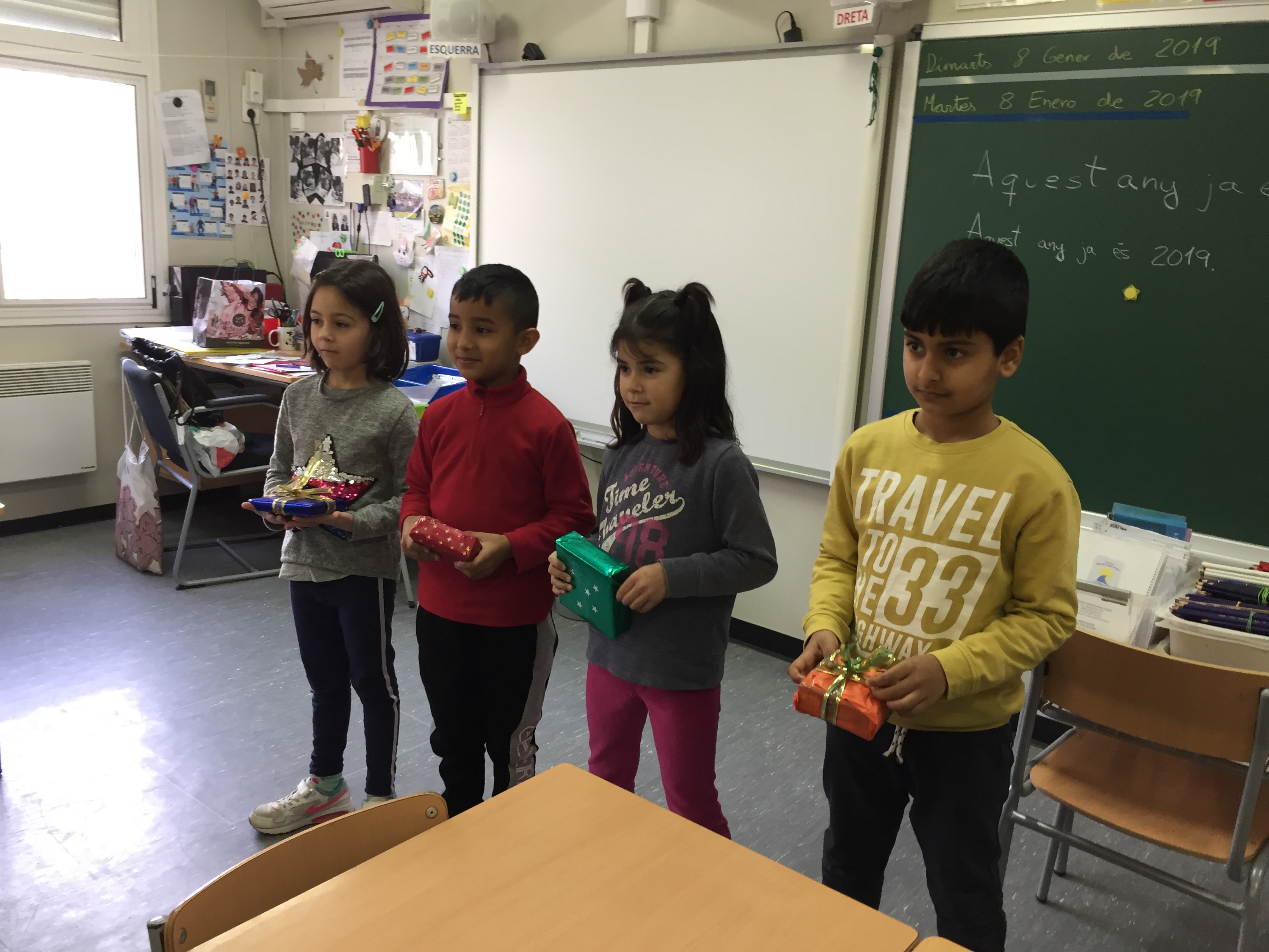 Només arribar ens vam adonar que aquest anys els reis no ens havien deixat els regals de segon a la nostra classe i els vam haver de buscar per l’escola. Ens van encantar i no vam trigar ni un dia en estrenar-los, tot i que alguns són de fer molts càlculs matemàtics ens encanten.