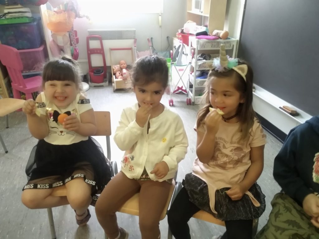 Tastem! Feu un comentari / Per Olga Llorens / 2 de juny de 2021 / General Infantil Portada PROMOCIÓ 24-32 I4 / CURS 2020/21, Educació Infantil, experimentació, p3 La Paula ens ha portat taronges i llimones del poble i hem aprofitat per tocar-les, olorar-les i tastar-les i després les hem estampat per fer un mural. Ha sigut una estona molt divertida!